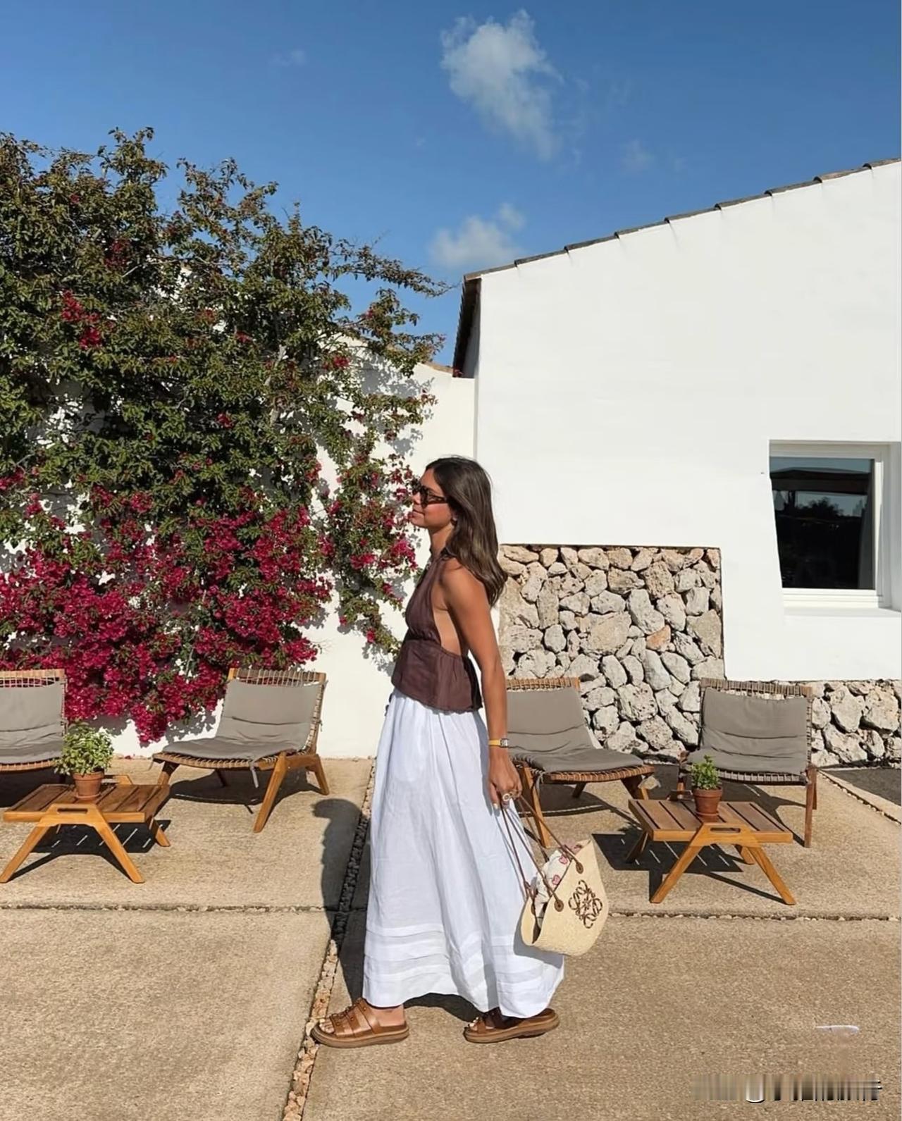 太喜欢这样的松弛感穿搭了,很简约气质!基础款白T、垂感阔腿裤、印花长裙,搭配草