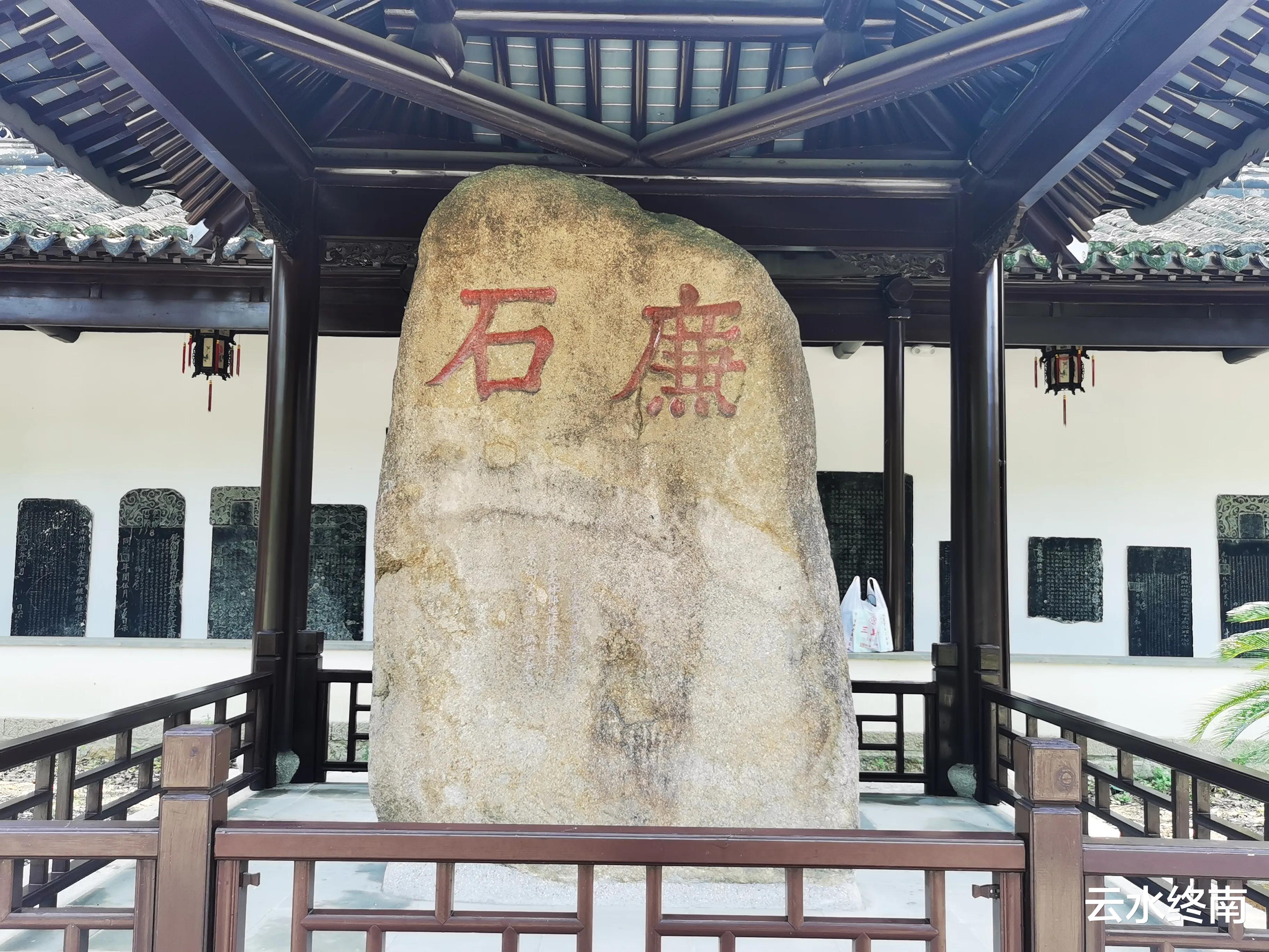 侧院有块"廉石",石上镌刻有两个斗大隶书字"廉石"这里有个故事:东汉陆绩为官多年两袖清风,卸任坐船回归时,因船轻不胜浪,难以入海航行。不得已之间,陆绩让人随意搬去一块石头镇压于船,这才得以起航,且平安渡海返回吴郡。