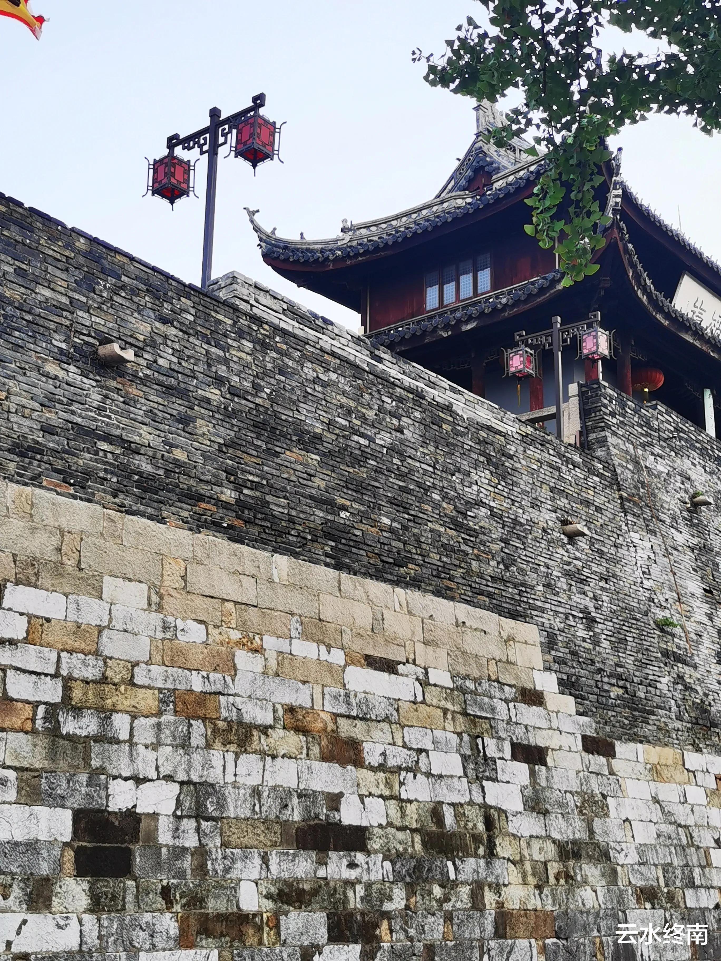从瓮城出来从城墙一侧上到城楼细看,这才发现了奥妙:水陆门连着,上面分别有绞关石,平时把石头绞起来,有情况就把石头落下,城门就关闭,为以防万一,绞关石还有两个。