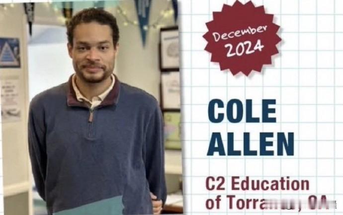 嫌疑人为31岁的科尔·托马斯·艾伦,来自美国加州托伦斯市,拥有加州理工学院机械工程、加州州立大学计算机科学双学历,是一名曾获评“洛杉矶县月度优秀教师”的教育从业者,联邦选举记录显示其曾为哈里斯总统竞选捐款25美元 。目前艾伦已被执法部门拘留,与此前网传“被击毙”的说法完全相悖,当局暂未公布其作案动机,若证实为针对总统的刺杀行动,这将是美国两年内发生的第三起同类事件。