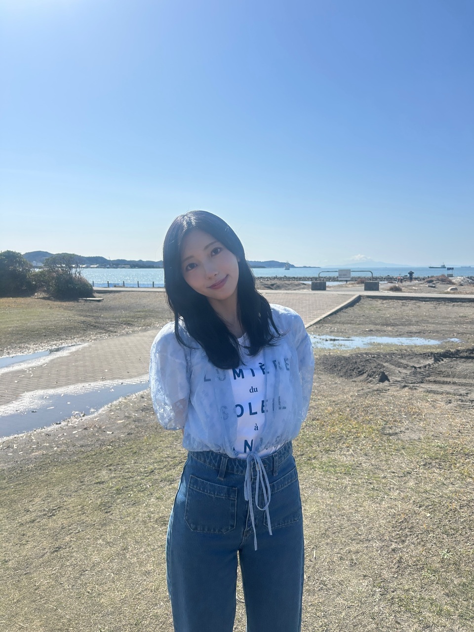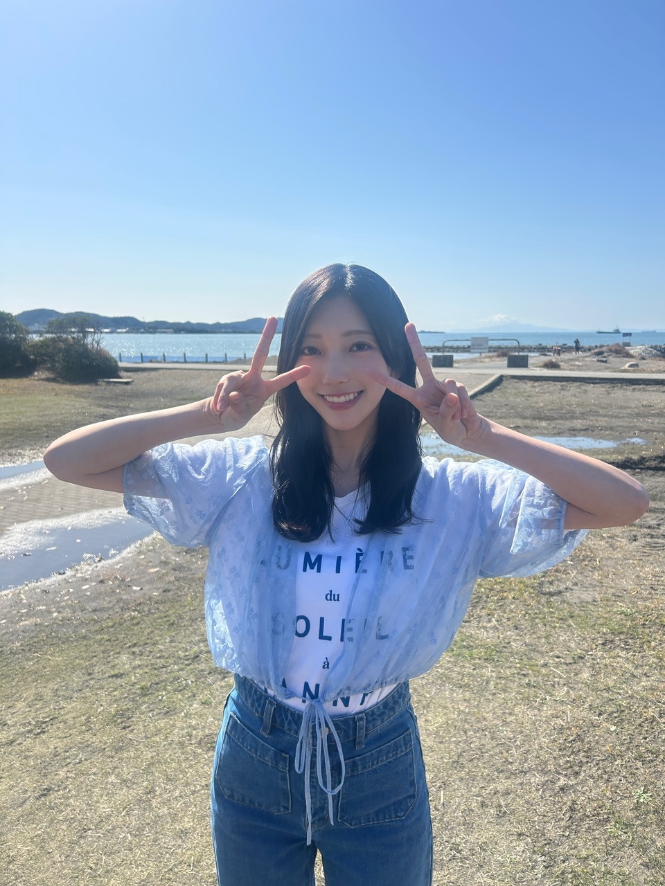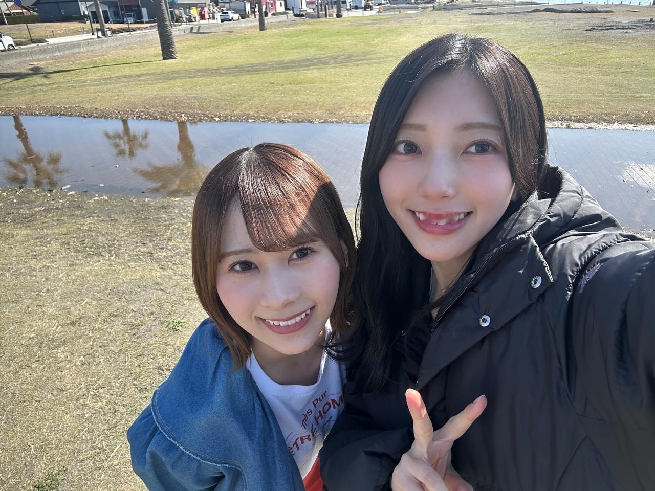 小西夏菜実🐺「人生で初めてネモフィラ畑に行きました。まだ五分咲きだったけどそれでもとっても綺麗で、遠くの海とネモフィラ畑区別つかないくらい青くて綺麗でした🌊みっちゃーんが素敵な写真を撮ってくれたよ📸ずっと爆風だった🌬️ひたち海浜公園楽しすぎて水族館行けんかった😭また行こう。」