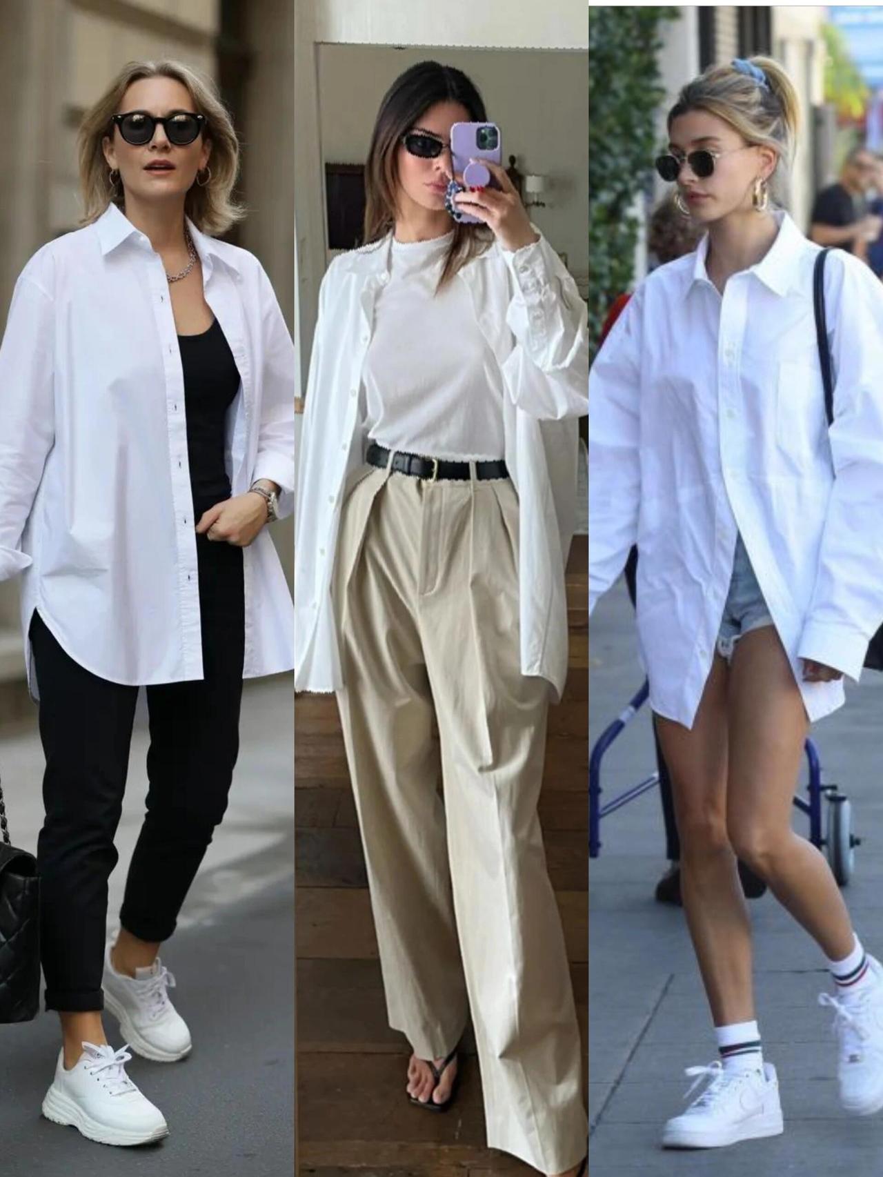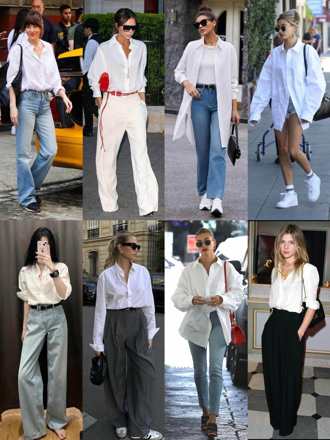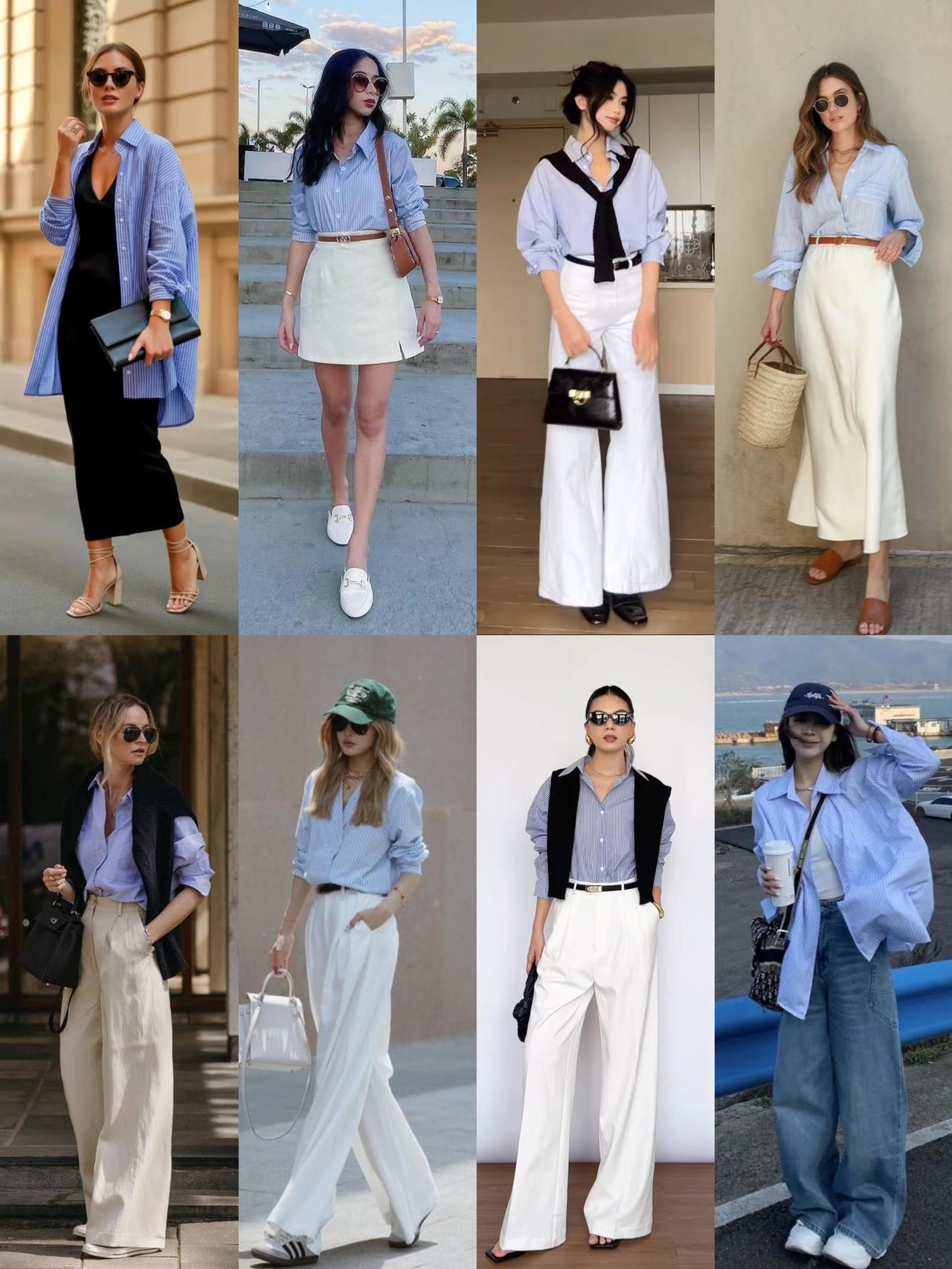 衬衫单穿配高腰裤,塞一半下摆利落显高,通勤温柔干练;叠穿马甲或解开扣子敞开,早秋慵懒松弛