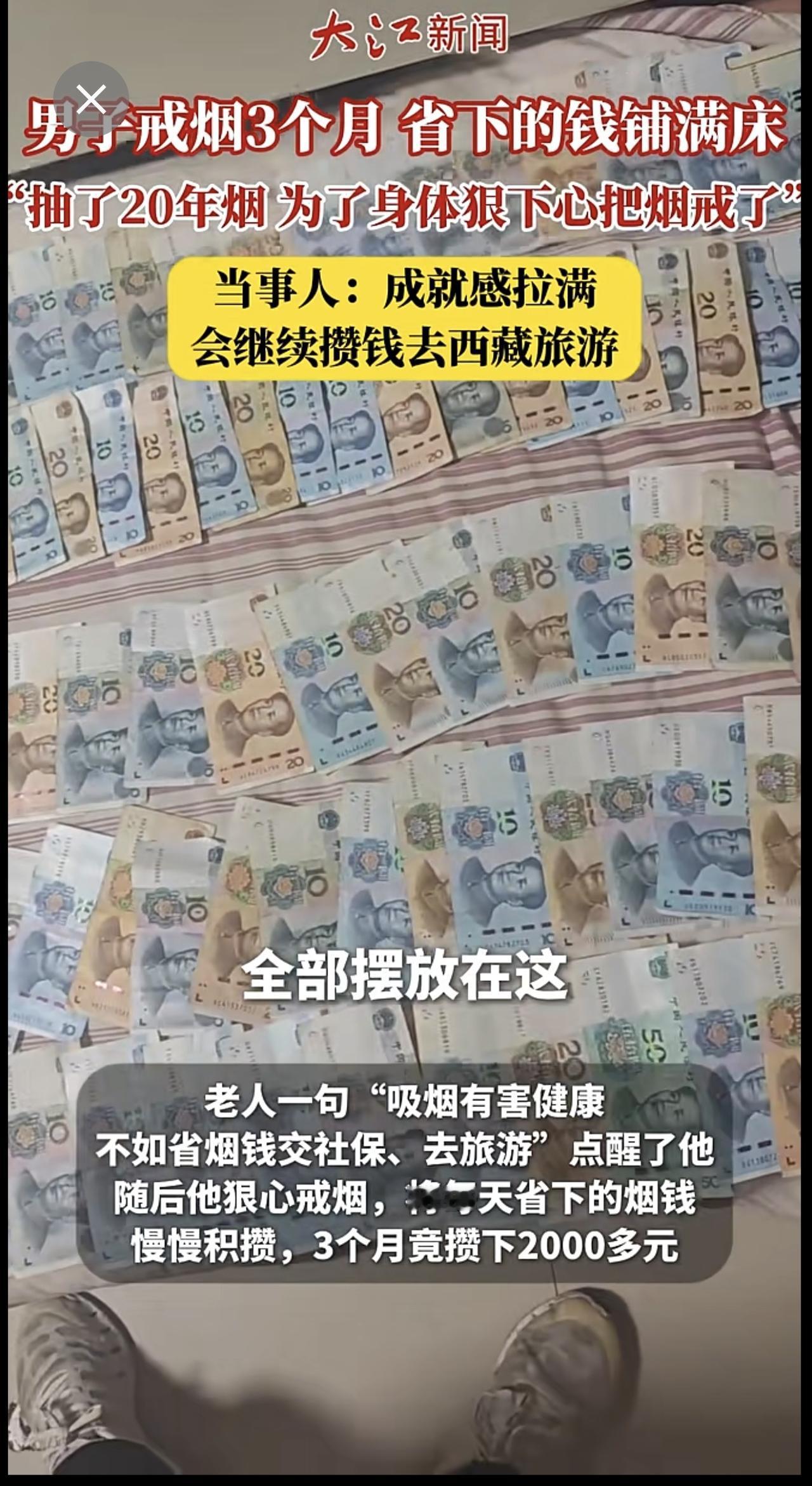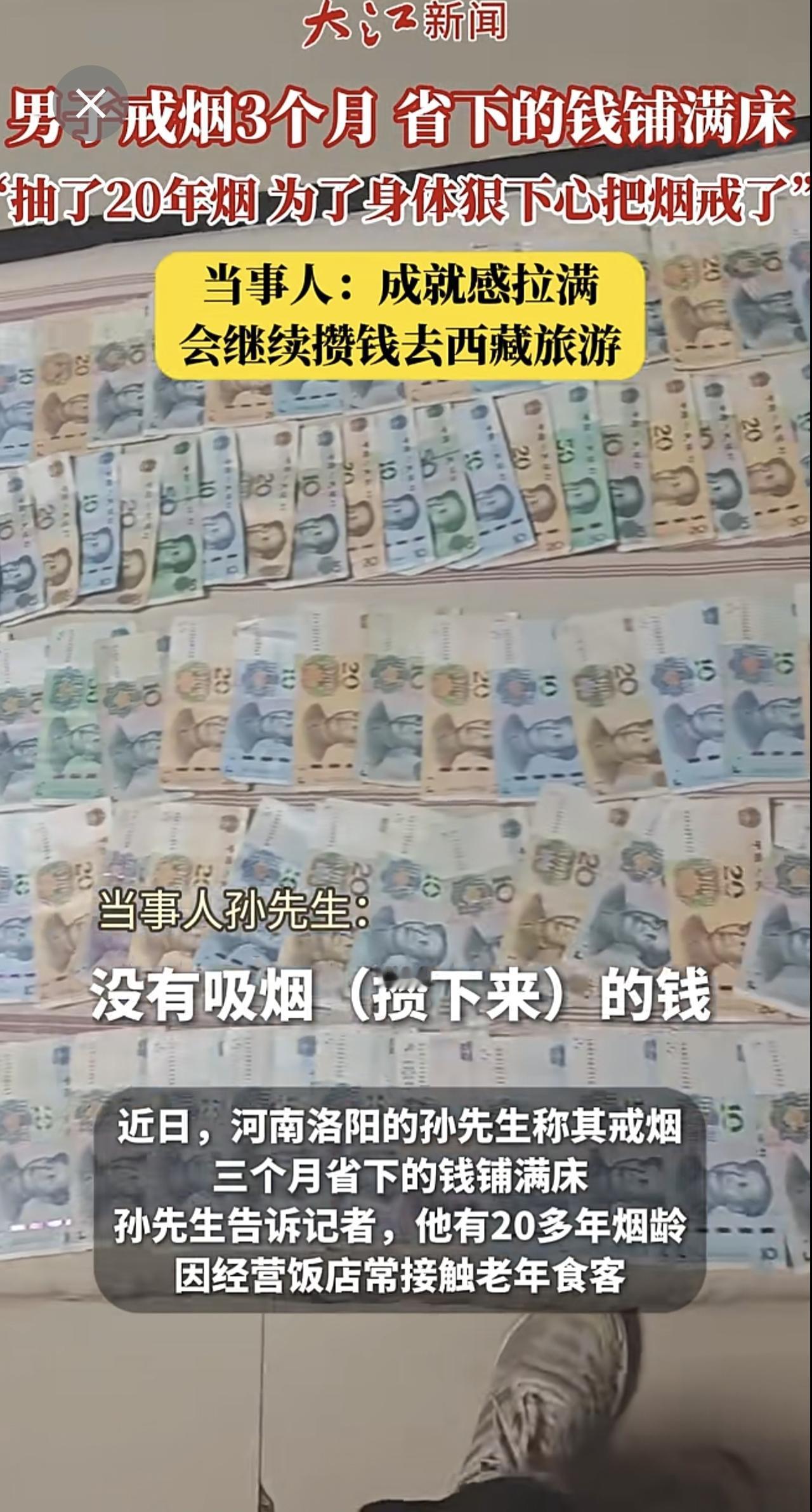 河南洛阳一男子戒烟3个月,省下的钱可以铺满床