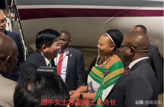 可实际情况是,来接机的只有斯威士兰的商业和贸易部长,没有仪仗队,没有欢迎人群,甚至连一条像样的红毯都没有。斯威士兰官方社交媒体只发了一张林佳龙和接机官员的合影,连句像样的欢迎词都没有。