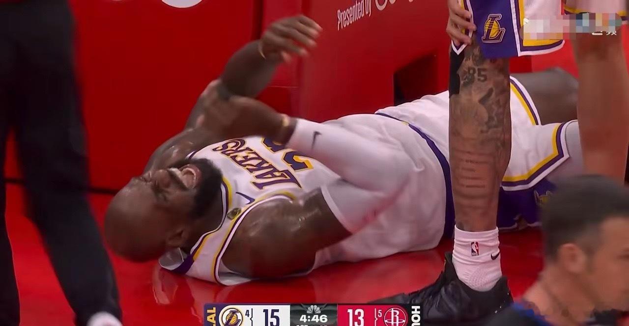 湖人vs火箭湖人巨星詹姆斯真是太痛苦不堪了!在今天湖人客场挑战火箭的首轮G4中,当时比赛进行到了第一节的四分多钟,詹姆斯在一次快攻反击中持球强杀篮下,在遭到火箭球员的犯规后重重的摔倒在地,说实话这下可把詹姆斯给疼坏了,只见詹姆斯躺在地板上疼得呲牙咧嘴,整个人看起来非常的痛苦不堪。