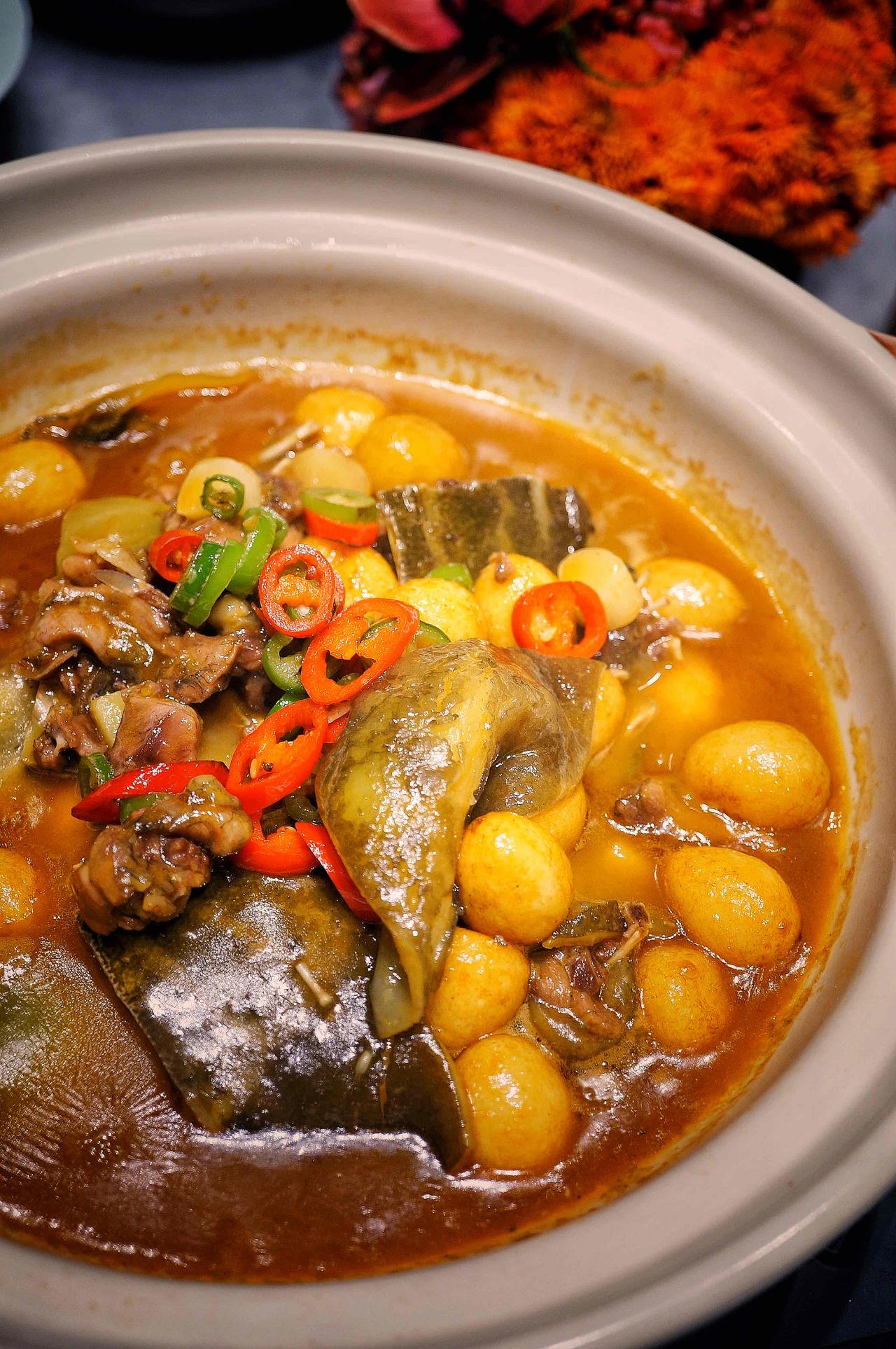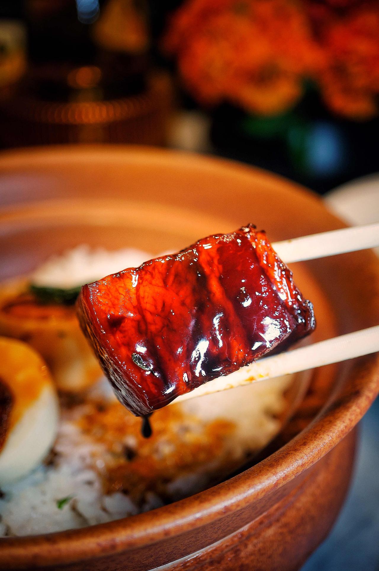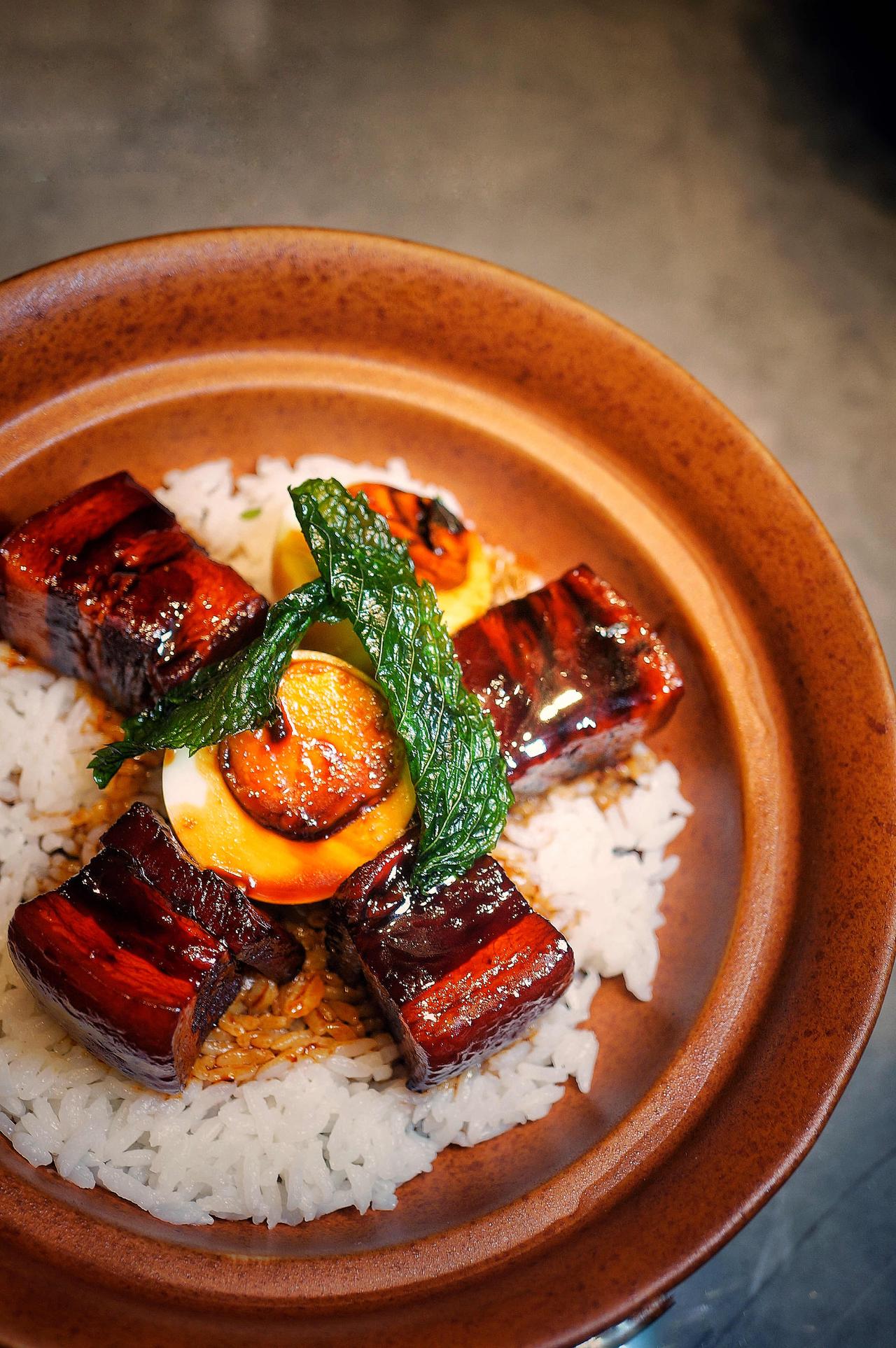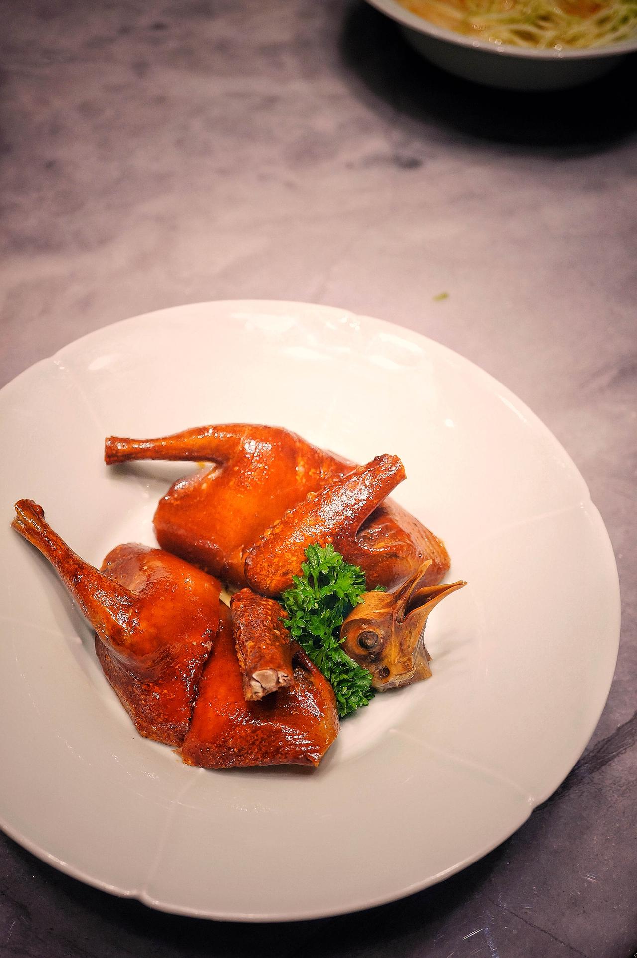 最让我惊喜的是那道广东师傅烧的红烧肉,用的也是两头乌。三天出一份——头天定型去掉边角,第二天慢火煨入味,第三天收汁上桌。肉块颤巍巍的,入口即化。