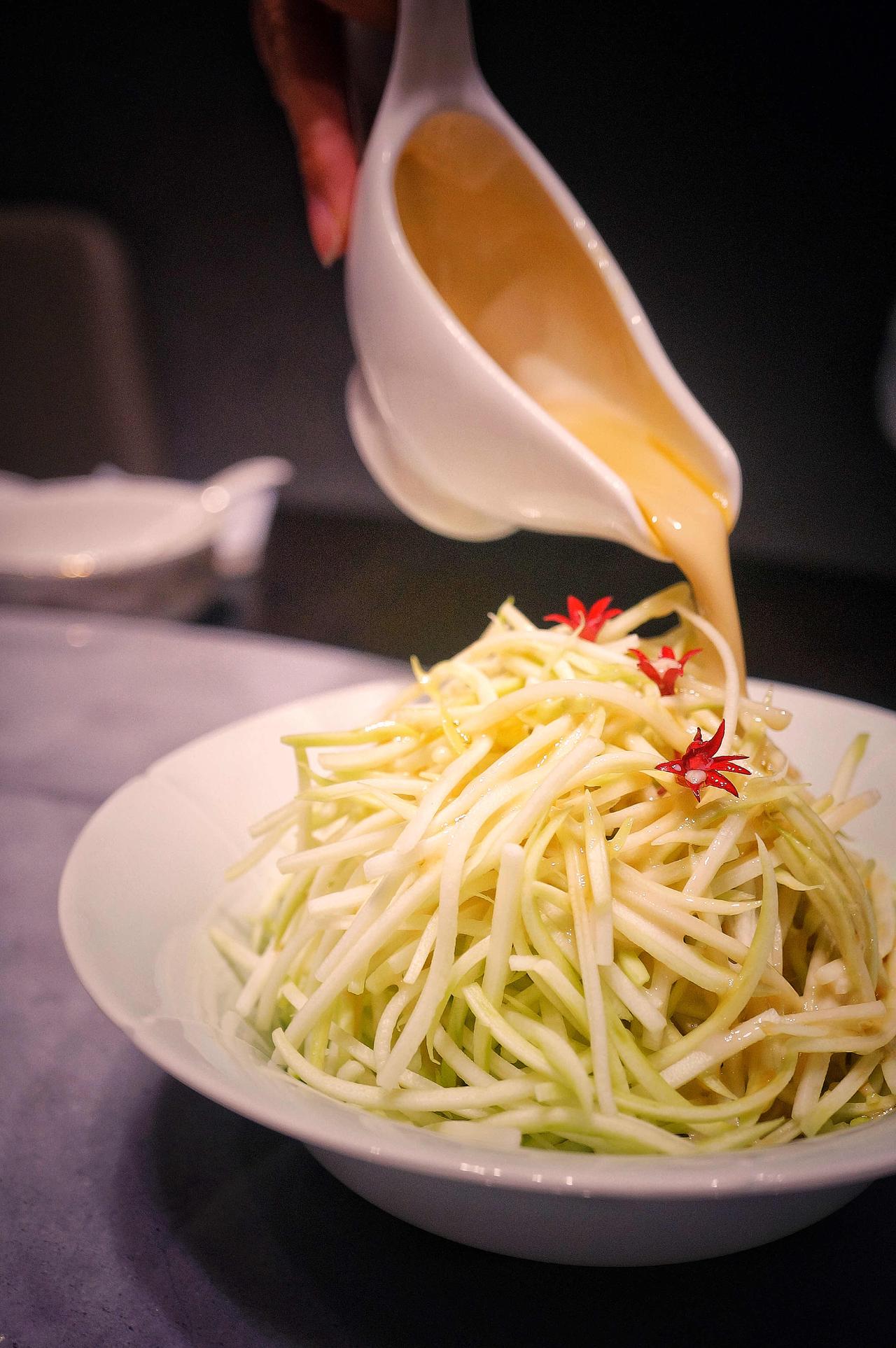 捞汁云南小瓜是店里销量第一。我起初不信,一盘二十来块的凉菜,能有多好吃?小瓜切得纤薄,捞汁清亮微酸,脆生生的,吃完油腻的来一口,整个人都清爽了。