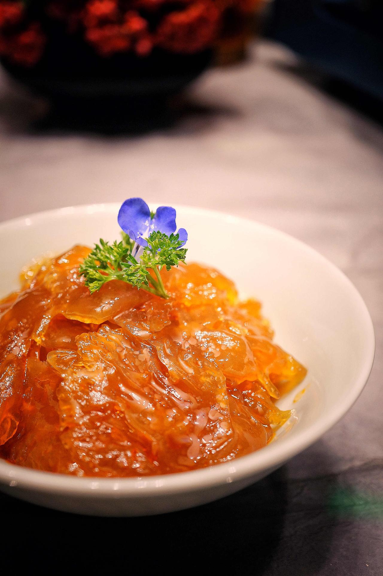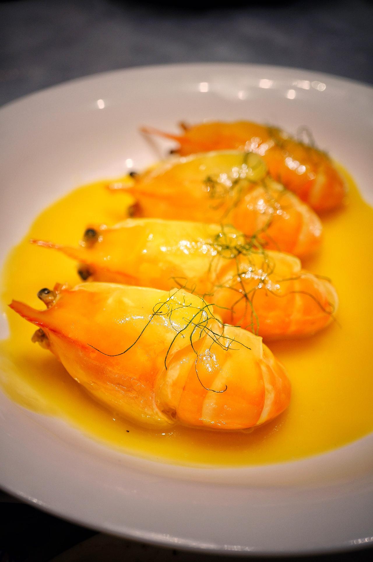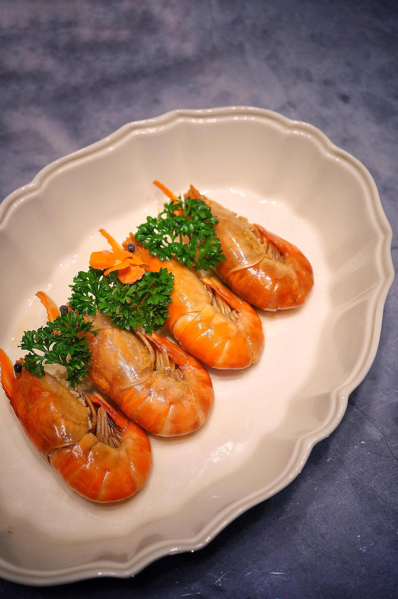 熟醉罗氏虾用了五种酒浸泡,其中最特别的是白色系花香干白。入口没有刺鼻的黄酒味,只有淡雅的果香和花雕的甜润。