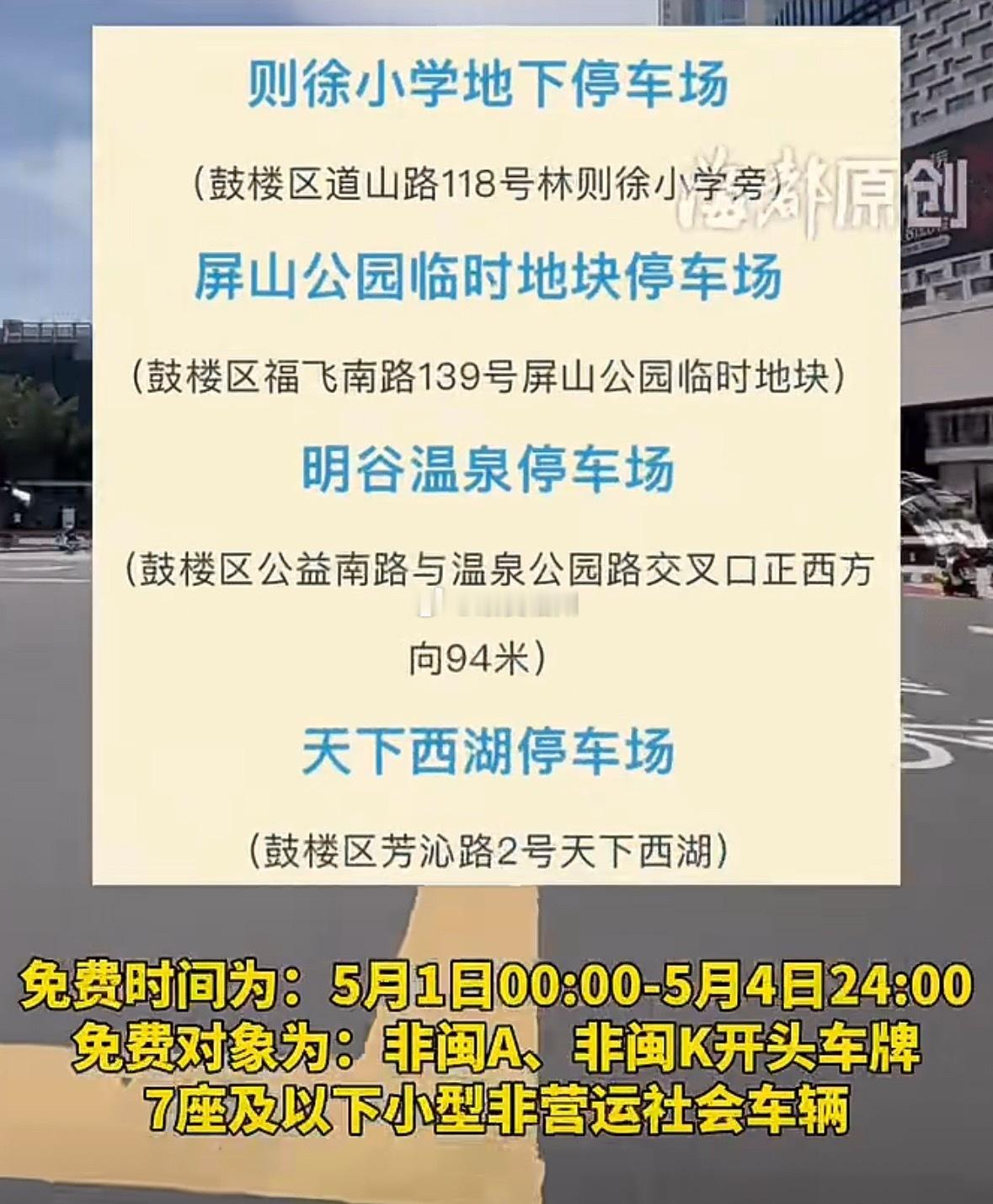 外地游客专属!“五一”期间福州鼓楼7大停车场免费停