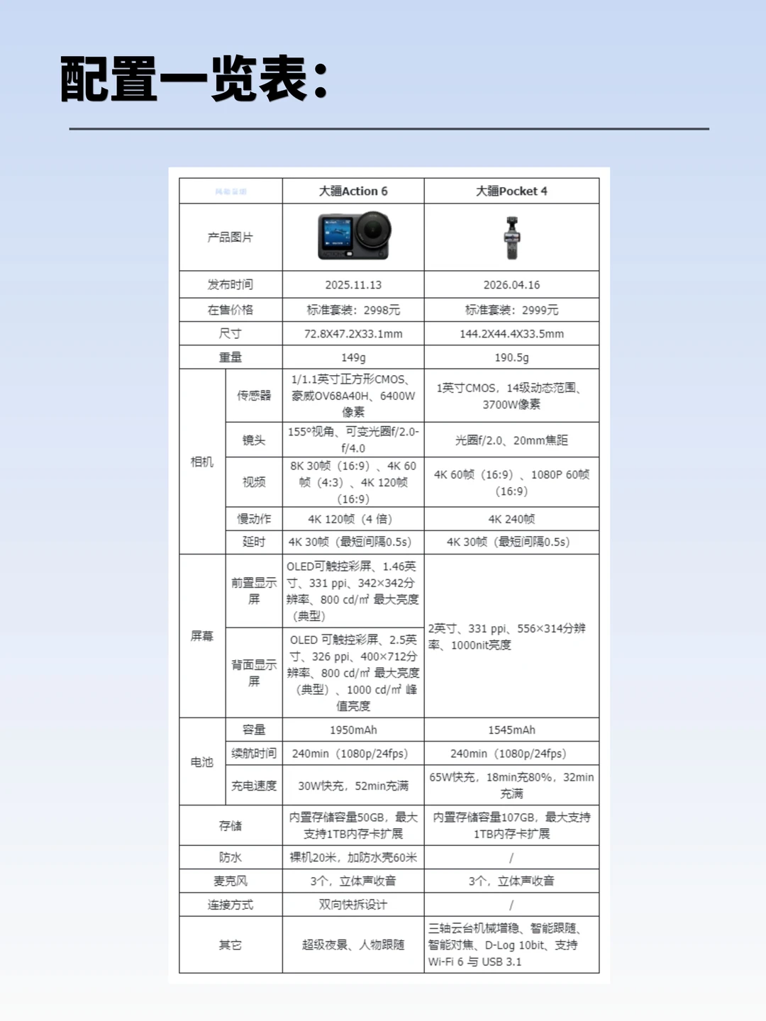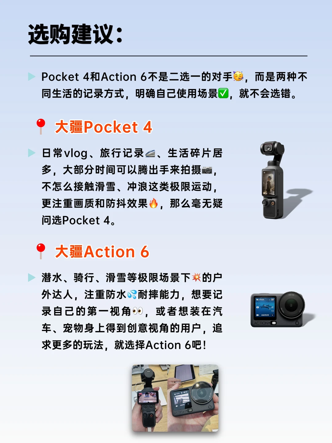 大疆Pocket 4🆚Action 6,两款相机怎么选❓