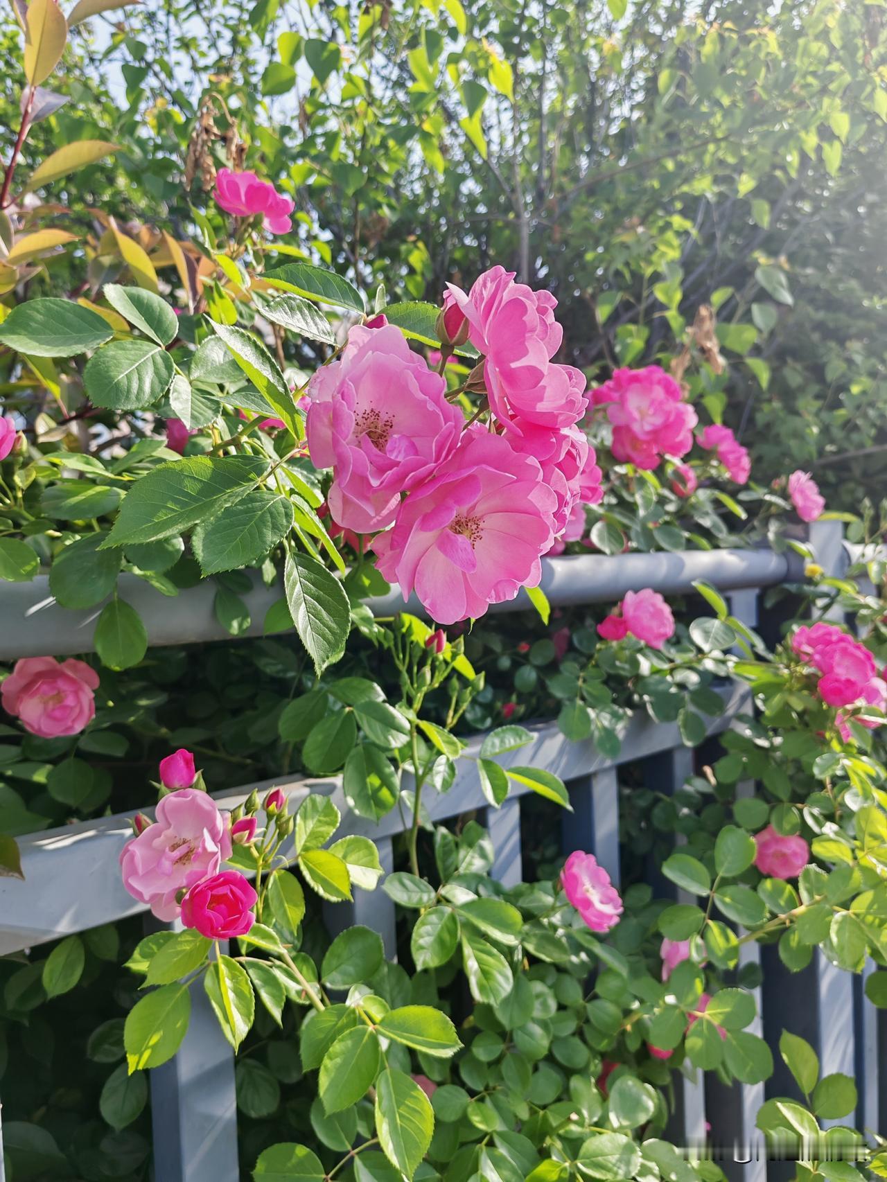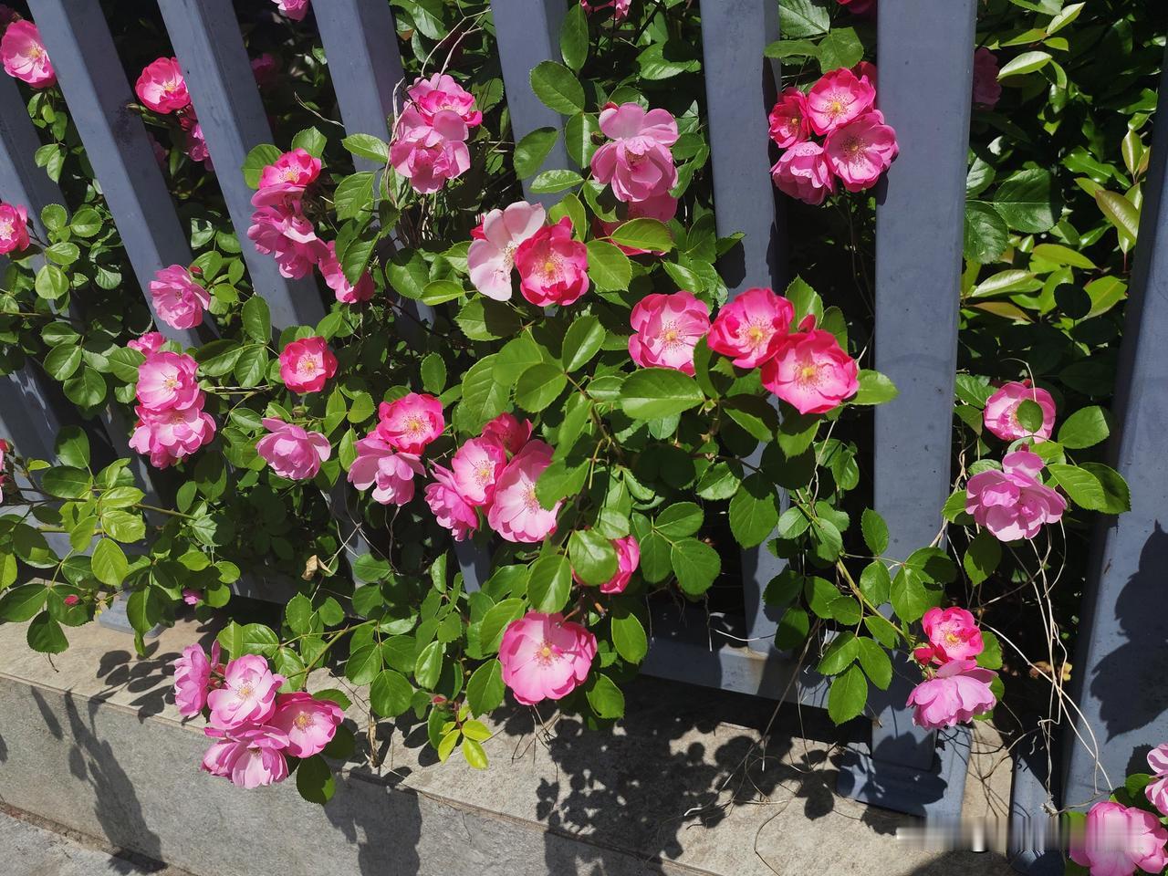一路上,蔷薇花从一些院墙探出头来,美极了。