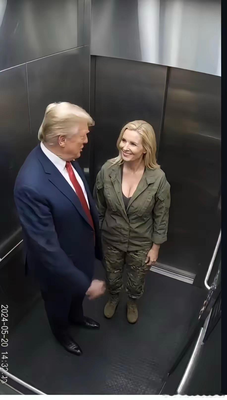 特朗普和他的女保镖在电梯里。
