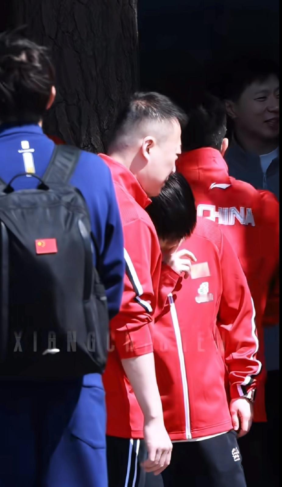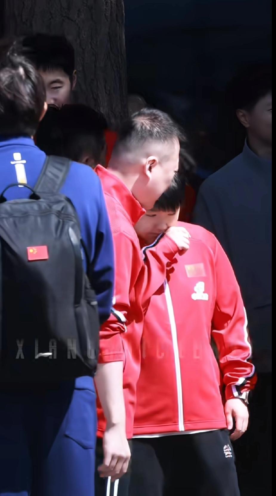 大合照准备现场,莎莎先是皱着小眉头一脸严肃,像个认真听安排的小大人,结果没一会儿就被马琳教练喊过去,低着头还揉了揉眼睛,瞬间没了刚才的“小严肃”,又乖又懵的样子,反差感直接拉满!