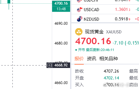 打破关口看延续!黄金上测试4715未达到预期,空头占优晚间先空!黄金思路;4700空,目的地4680(个人观点,仅供参考!)