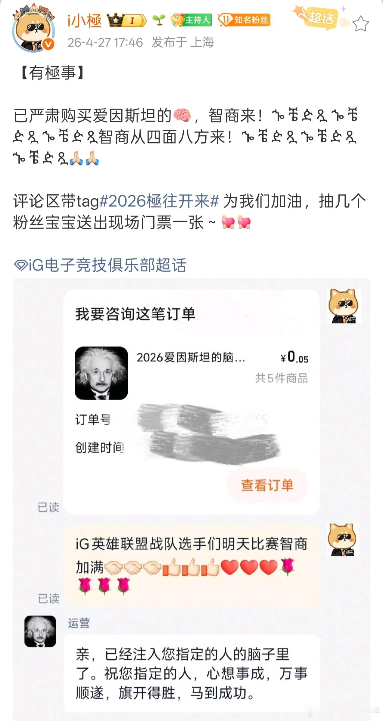 起因是,iG吉祥物先为队伍配置了5个爱因斯坦的大脑,随后AL吉祥物不甘示弱,严肃对冲甚至更胜一筹,为团队装备9个爱因斯坦的脑子加强无敌至尊版。