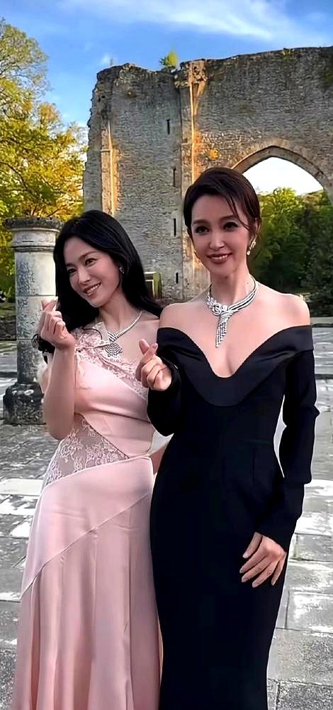镜头里,宋慧乔肩膀微微收着,眼神有点飘,可能确实有点紧张。旁边的李冰冰,一身黑裙,直角肩撑得稳稳的,眼神那叫一个坚定。