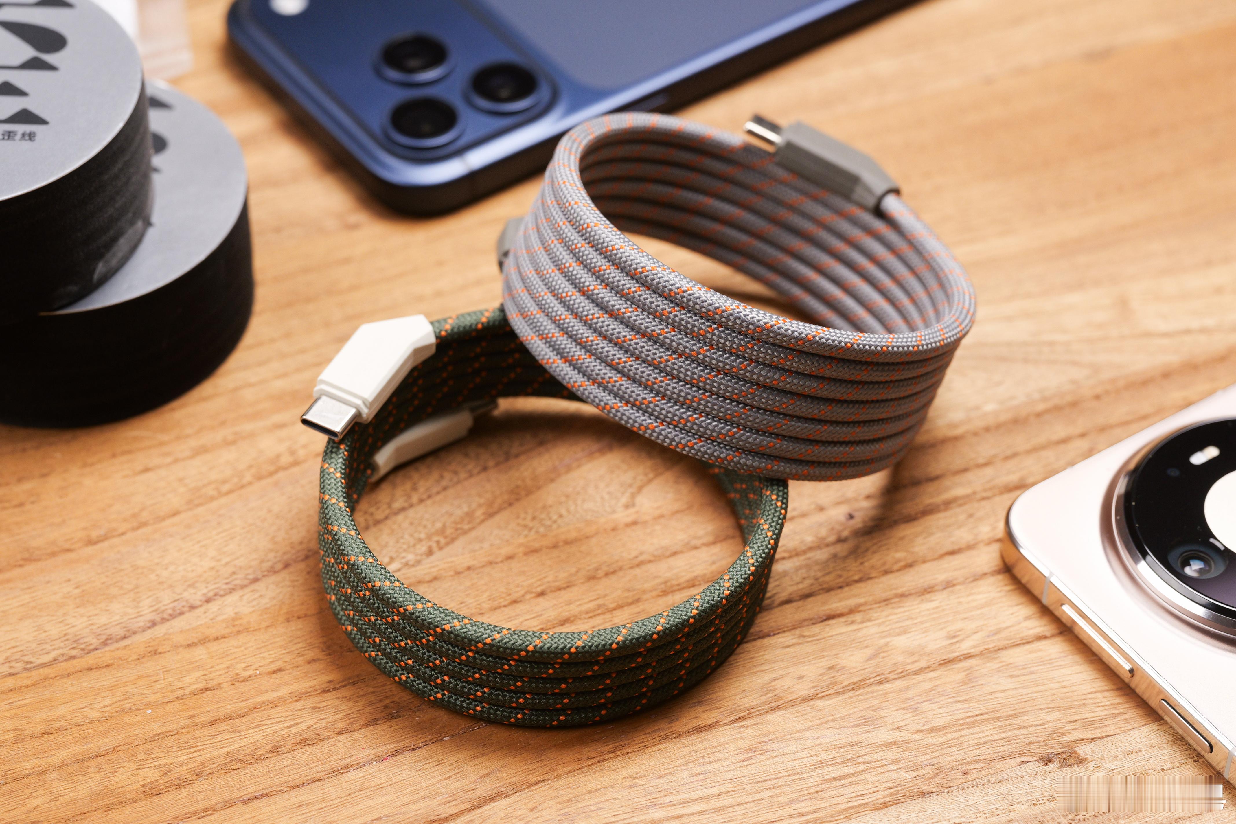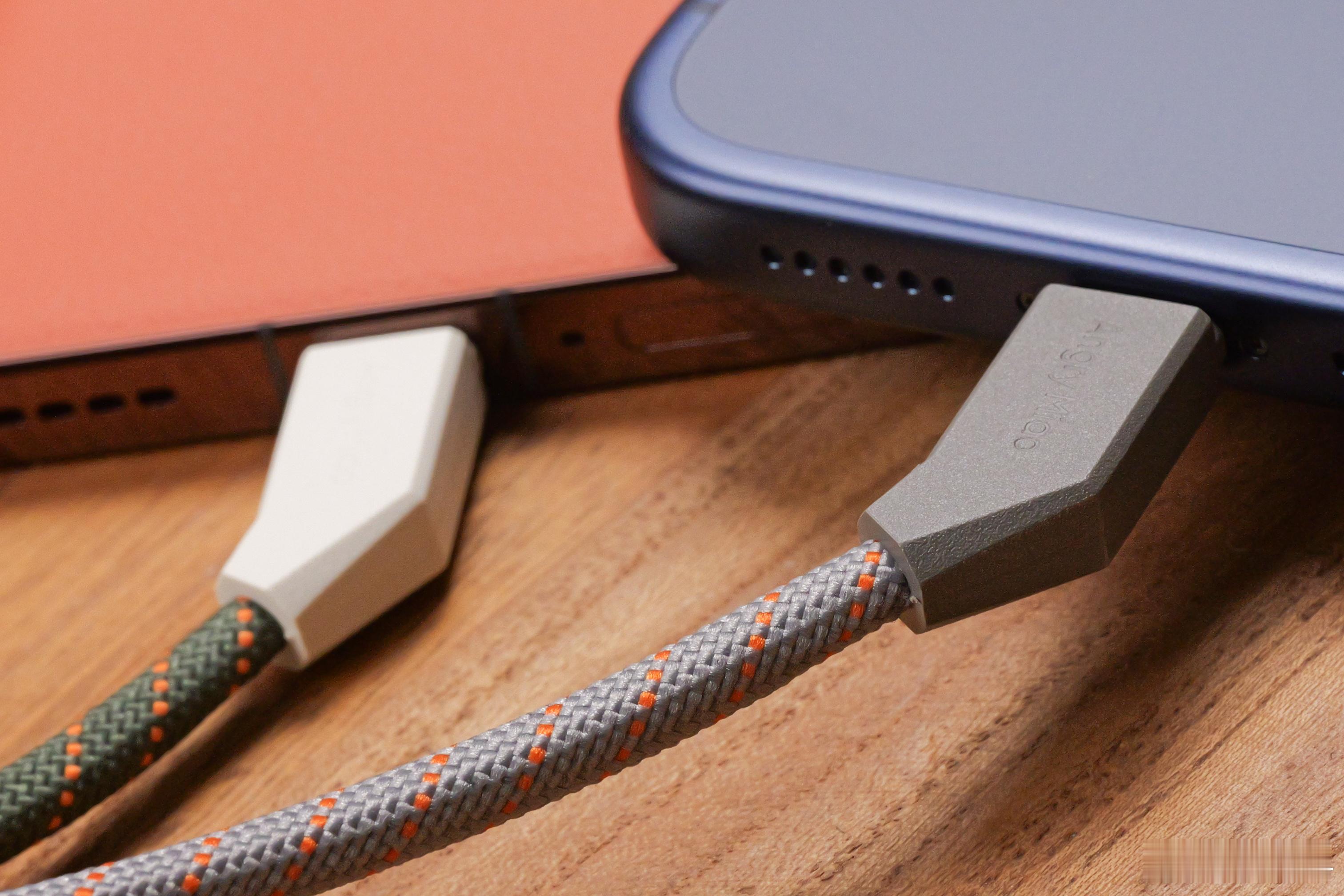 他家品质大家应该都知道,尤其是周边数码类产品,像这数据线这一块其实各家都在做。怒喵牛就牛在,他家是真的懂消费者想要什么样的东西。网尾跟尾插这边设计的相当巧妙,正好是一个小斜角,歪头设计就问你巧不巧吧。那这样一来的话,对于你使用手机,尤其是很握时,它的表现会更好。而且不会影响到网尾地方的弯折。再有它的这个编织材质非常高级,支持磁吸收纳,就算你不用放在桌子上,他也算是个摆件。