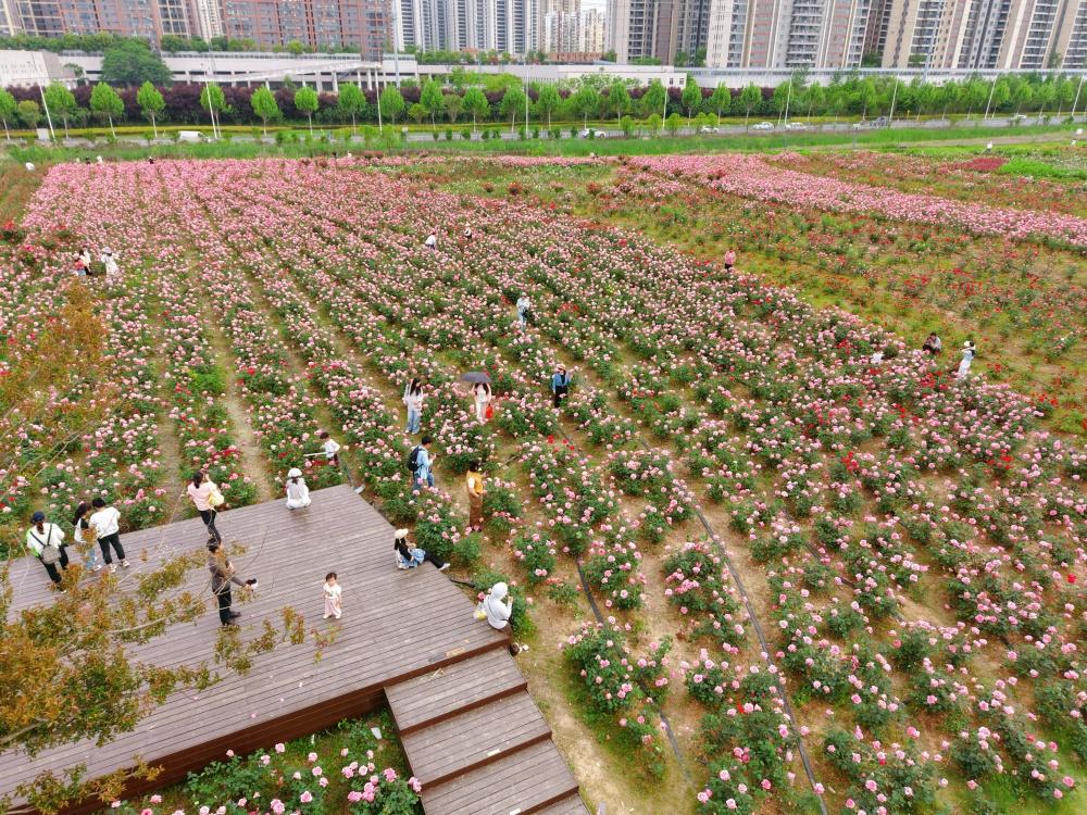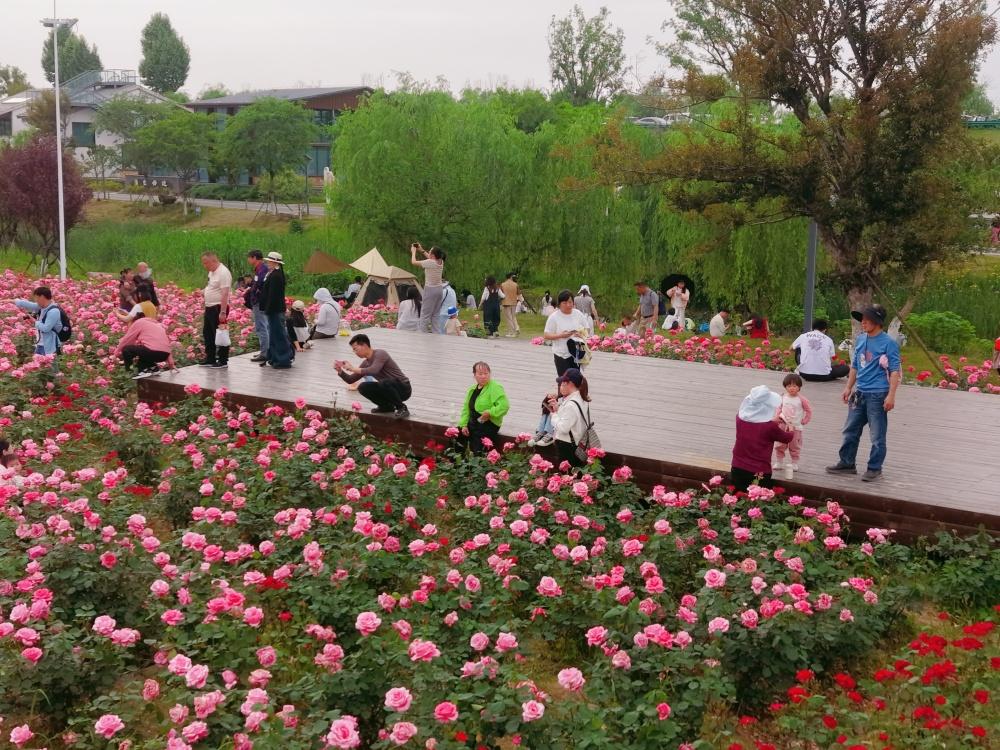 【旧消纳场变身武汉最大玫瑰花海】东西湖区府河沿岸,梧桐雨公园静静伫立,它毗邻黄塘湖公园,后门便直通后者大门。谁能想到,这片如今的“城市绿心”,曾是武汉最大的建筑垃圾消纳场。经生态修复,荒坡废地化身森林运动休闲公园,更孕育出武汉最大的玫瑰花海。五一前夕,园内玫瑰或绽露芳颜,或含苞待放,即将迎来盛花期。湖北春天奇遇记