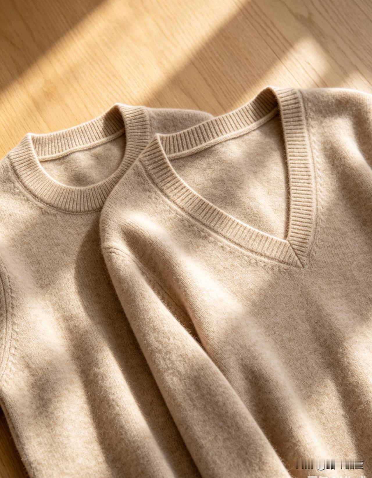 大圆领和V领就好很多。 露出一点锁骨,脖子一下就拉长了,整个人都显得精神。我那件燕麦色的毛衣,圆领的时候穿着像居家睡衣,后来换成V领款,立马不一样了,好几个人问我是不是瘦了。