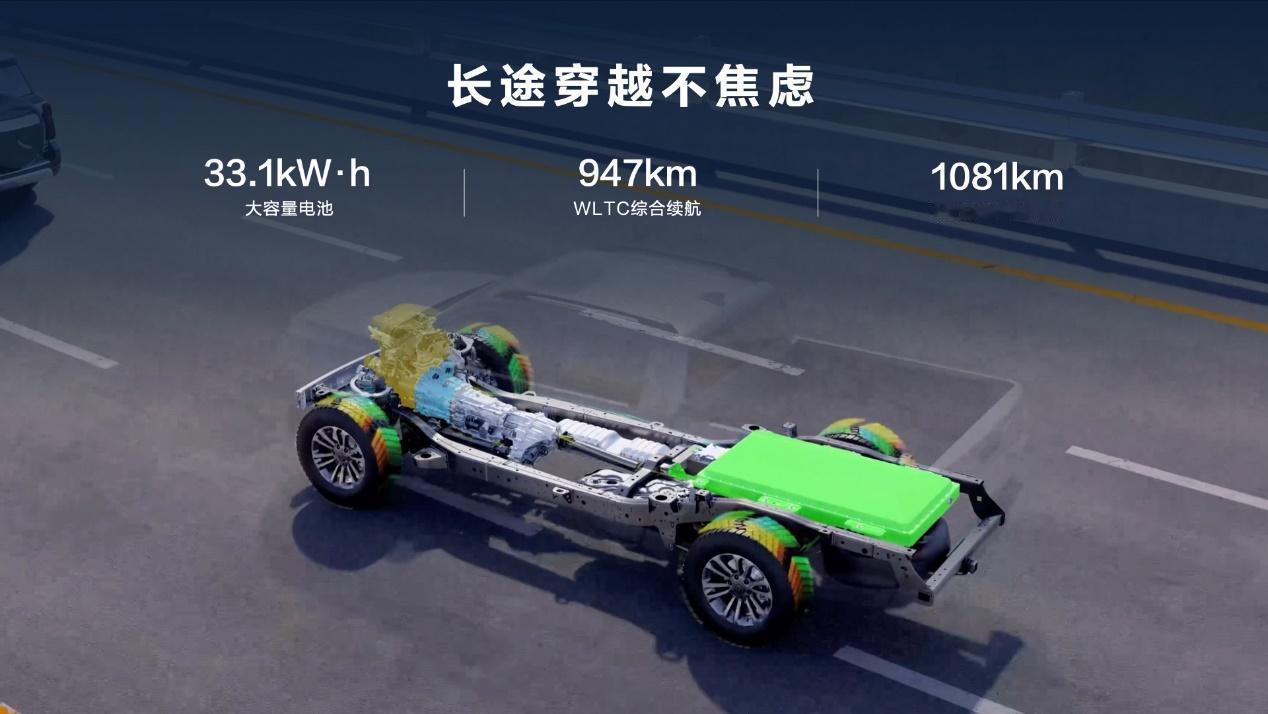 该车搭载越野超级混动 Hi4-T 架构,基于坦克平台研发,油电并联设计搭配机械四驱,馈电状态性能不衰减,非承载式车身保障安全,历经数亿公里验证,解决了新能源皮卡长途穿越焦虑、重载爬坡过热、馈电动力衰减、电池易磕碰四大核心难题。