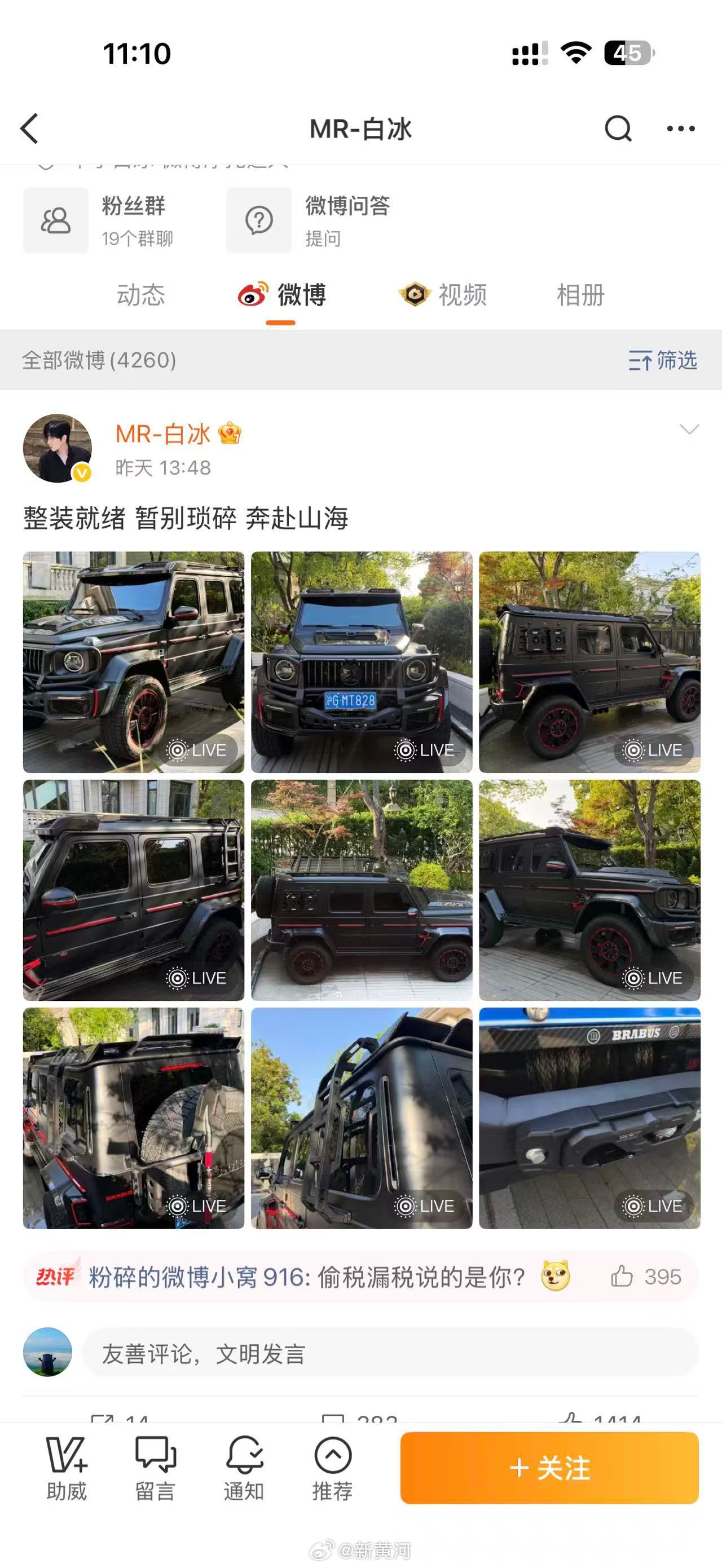 记者浏览白冰账号发现,昨天刚晒了豪车九宫格,在其短视频平台也有不少的奢侈品以及贵价美食。#网红白冰偷税911.18万# #网红白冰买名牌包挂公司账#