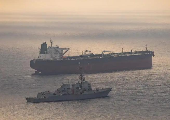 一艘油轮正驶向伊朗港口,美军导弹驱逐舰突然出现在它的正前方——这一幕,4月26日真实上演在阿拉伯海某处海域。