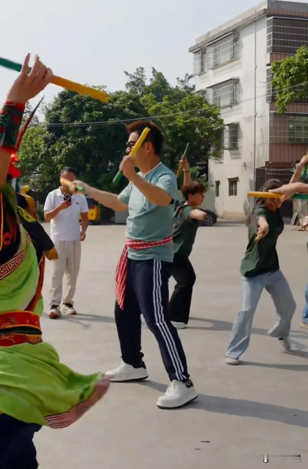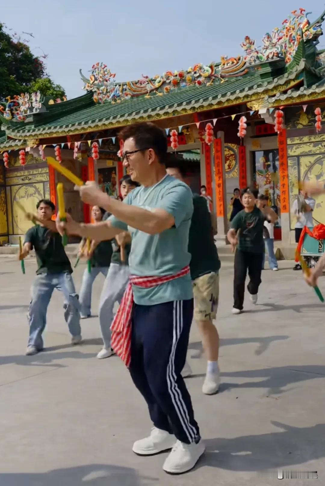 任贤齐现身广东汕头体验非遗“英歌舞”,六十岁的他,腿脚好灵活,状态好年轻。