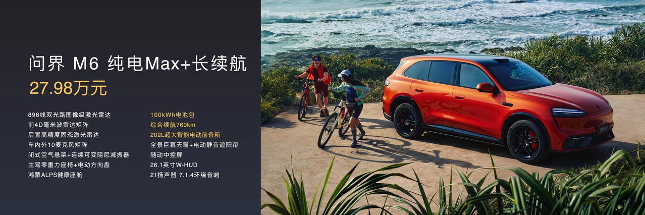 问界M6最聪明的地方,不是单纯堆配置,而是把用户真正高频使用的东西都提前配齐了。像26.1英寸W-HUD,日常开车导航和信息查看更直观;电吸电弹门和智能电动前备箱,日常上下车、装载物品都更方便;10处磁吸加10处螺纹点位这种细节设计,也明显是站在真实用车场景去考虑。再加上华为乾崑智驾ADS4.1高阶版和全系标配激光雷达,智能体验也没有妥协。问界M6不是简单的“参数豪华”,而是真正把高价值感落到了日常生活里。起售价25.98万元,即刻下定还可享至高56000元购车权益,真的可以闭眼入。