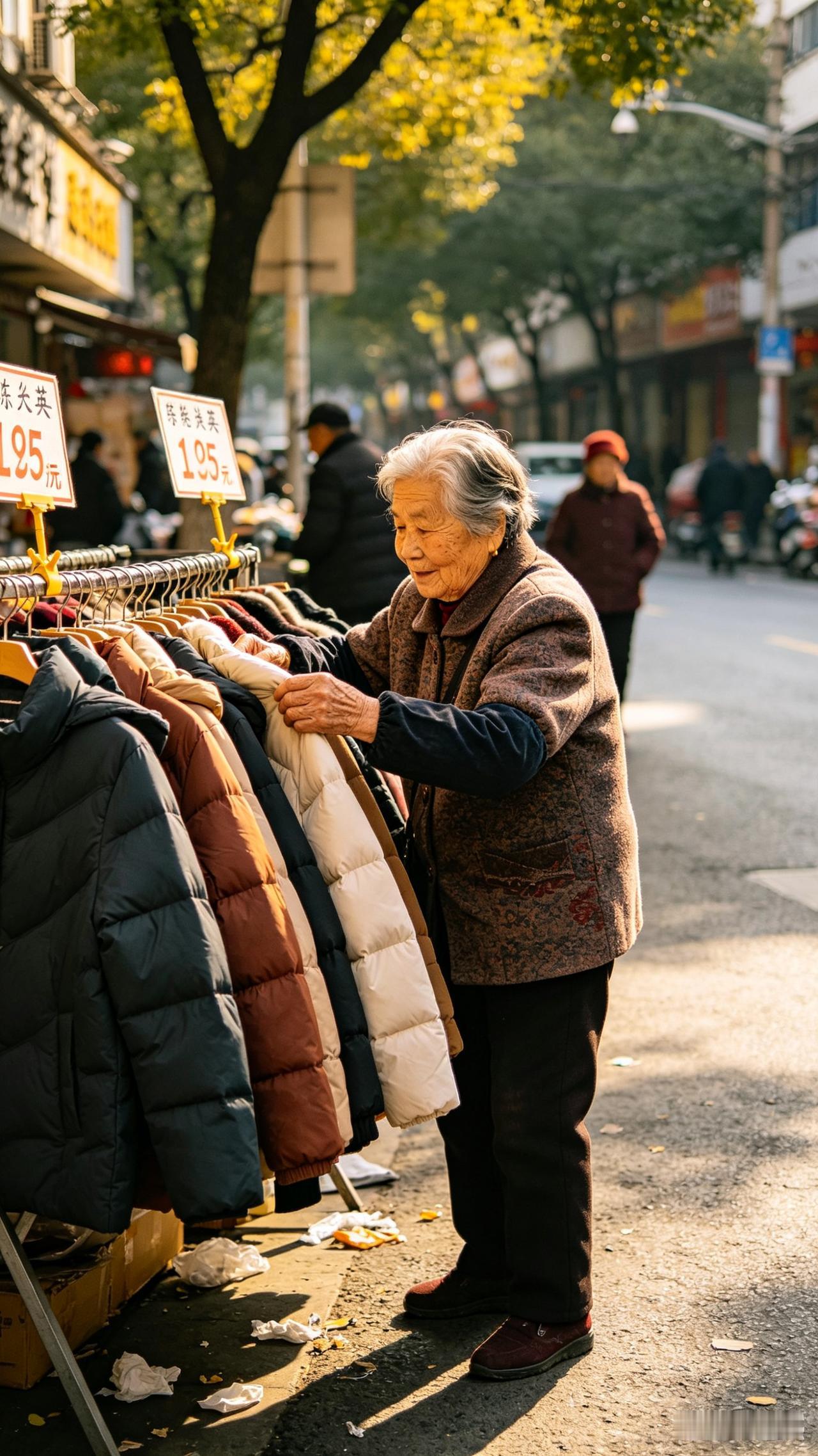 从82岁那年开始,陈金英每天凌晨5点起床,拖着装满羽绒服的小推车,坐两小时公交赶到丽水市区摆摊。零下几度的冬天,她就着冷风啃馒头;夏天顶着烈日,汗水湿透衣背。有人认出她:“您不是那个老板吗?”她笑笑:“现在是摆摊老太。”