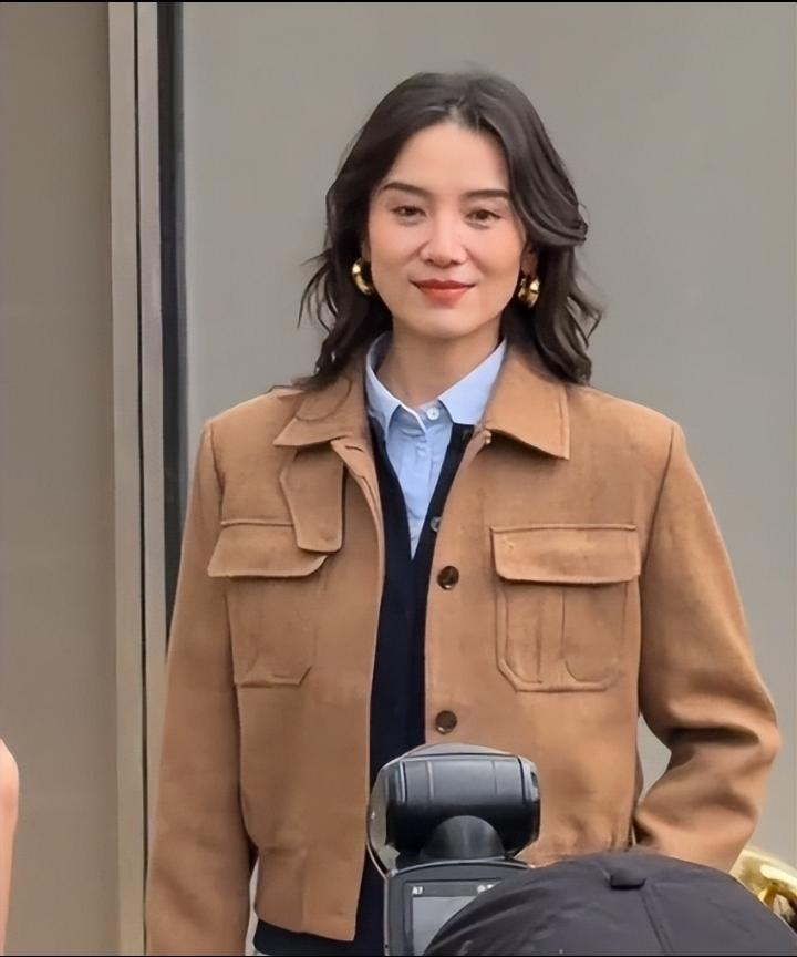 这是HAZZYS上海新天地首店开业的时候,宋佳当天造型超有味道,棕色皮夹克内搭浅蓝衬衫,配白牛仔加长筒靴,一头卷发慵懒又利落,妥妥的西部牛仔风,现场还对着镜头俏皮wink,这一下直接出圈,甜飒感拉满!
