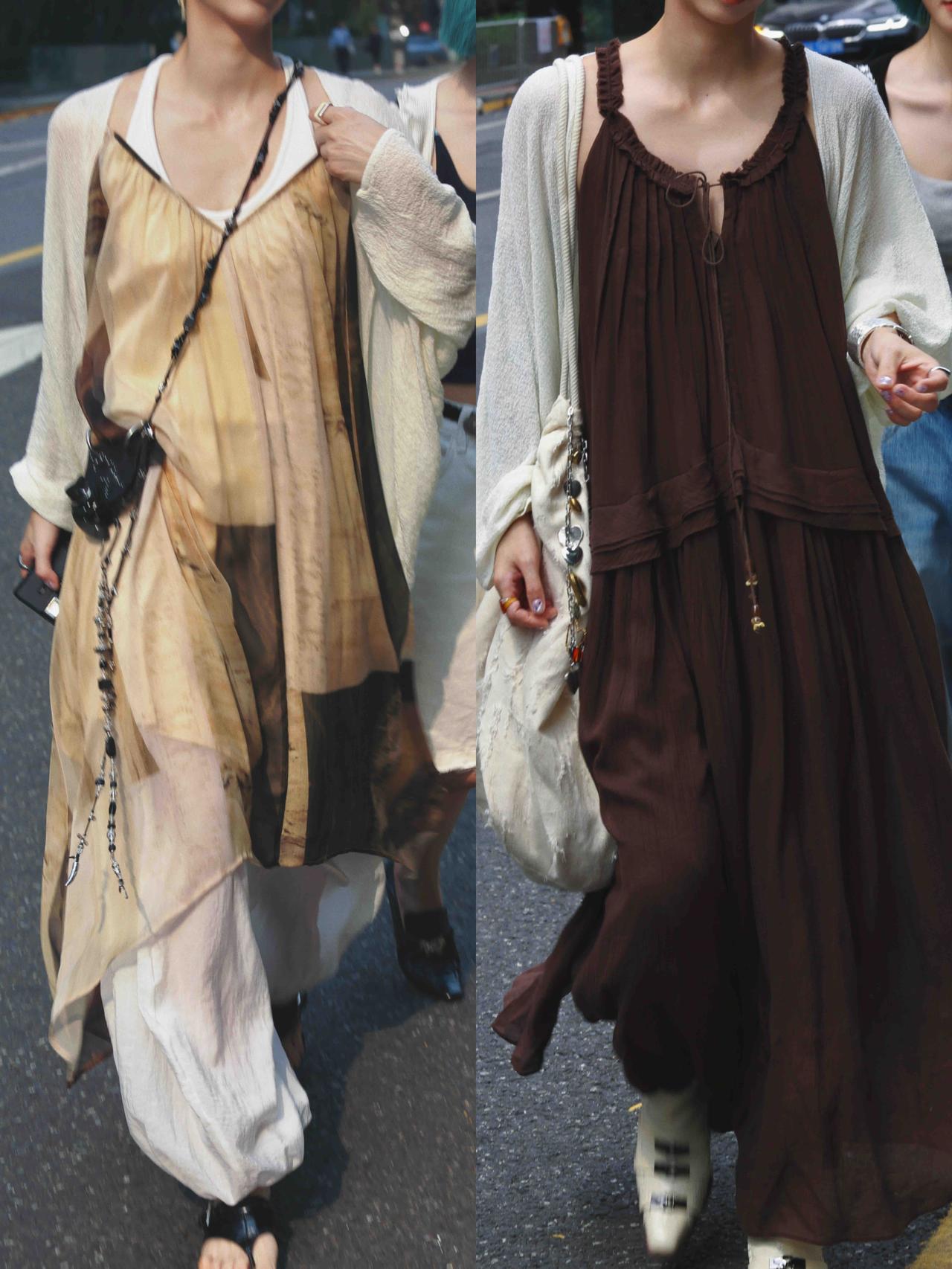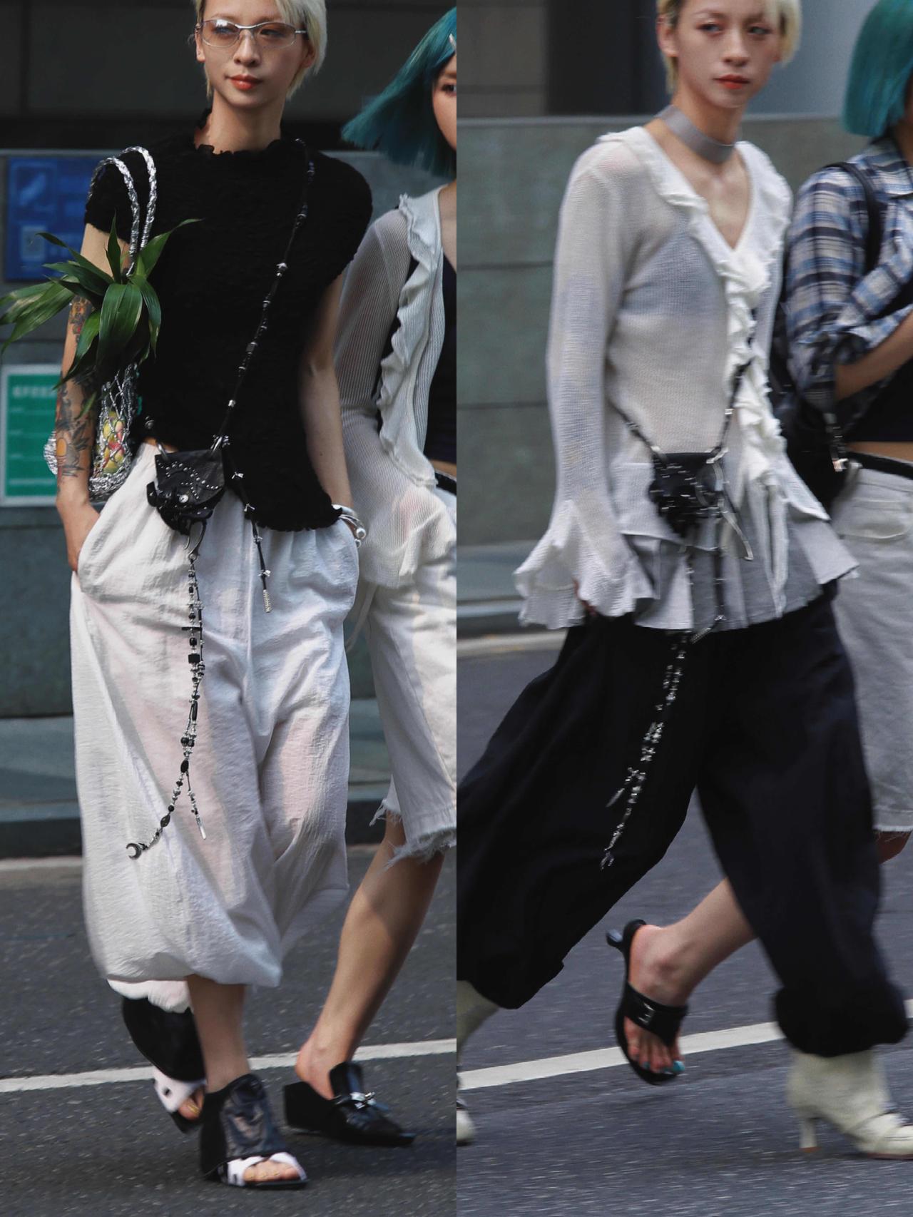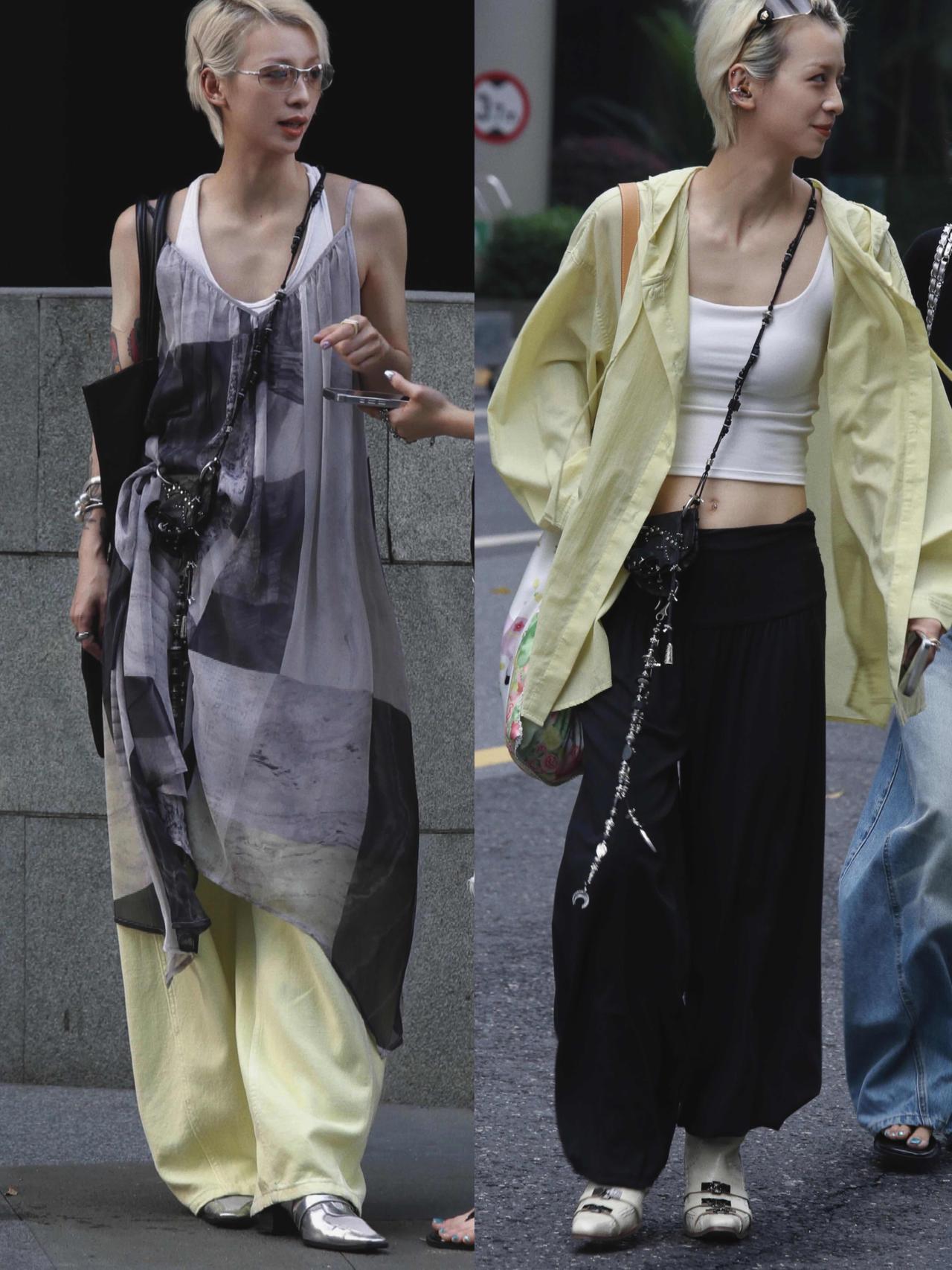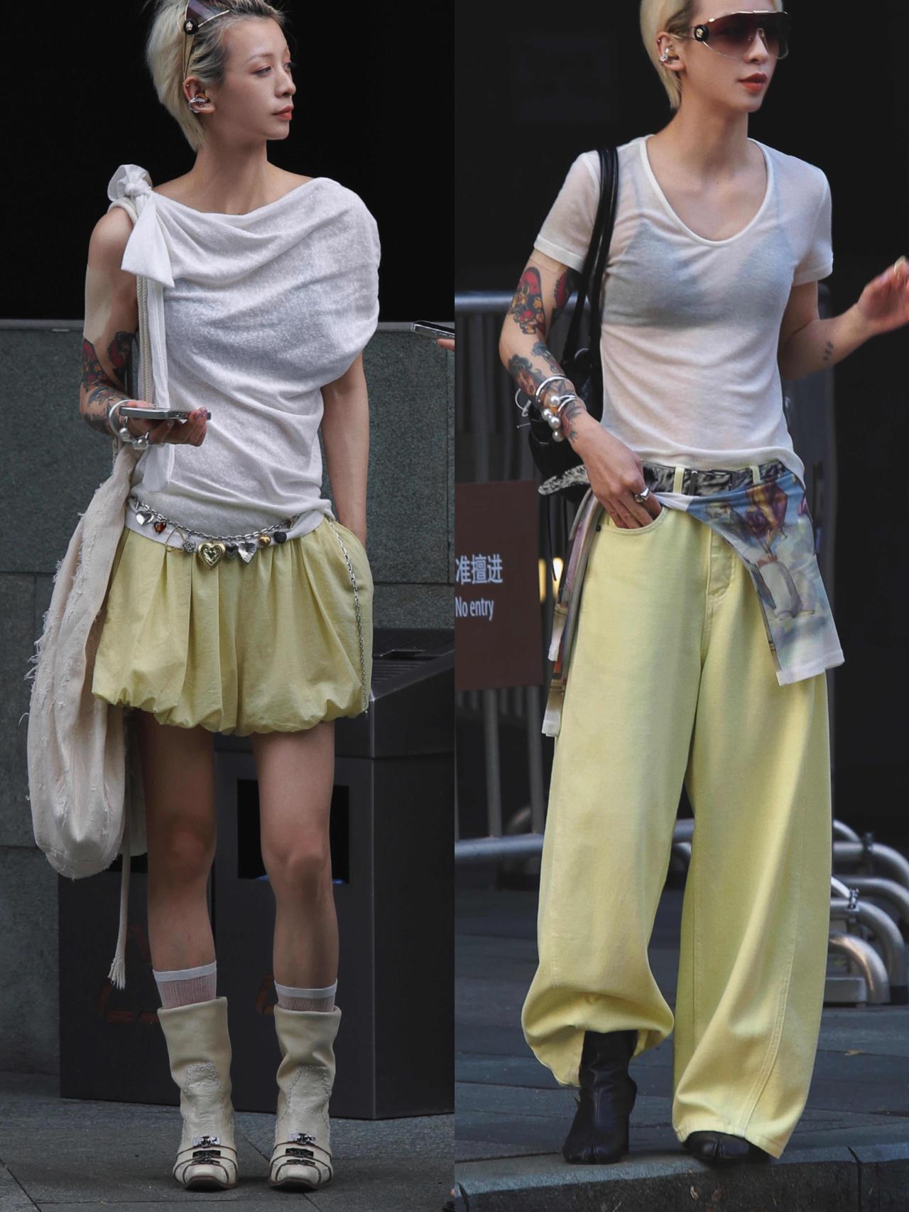 松弛感黑白穿搭自带清冷氛围感,薄透罩衫、垂感灯笼裤搭配做旧帆布包,随性又有层次。亮黄单品打破沉闷,银饰与链条配饰点亮细节,软靴、穆勒鞋适配多种风格。低饱和色系混搭,把慵懒和酷感平衡得刚刚好,街头吸睛又不费力,随便一拍都是时髦大片感。