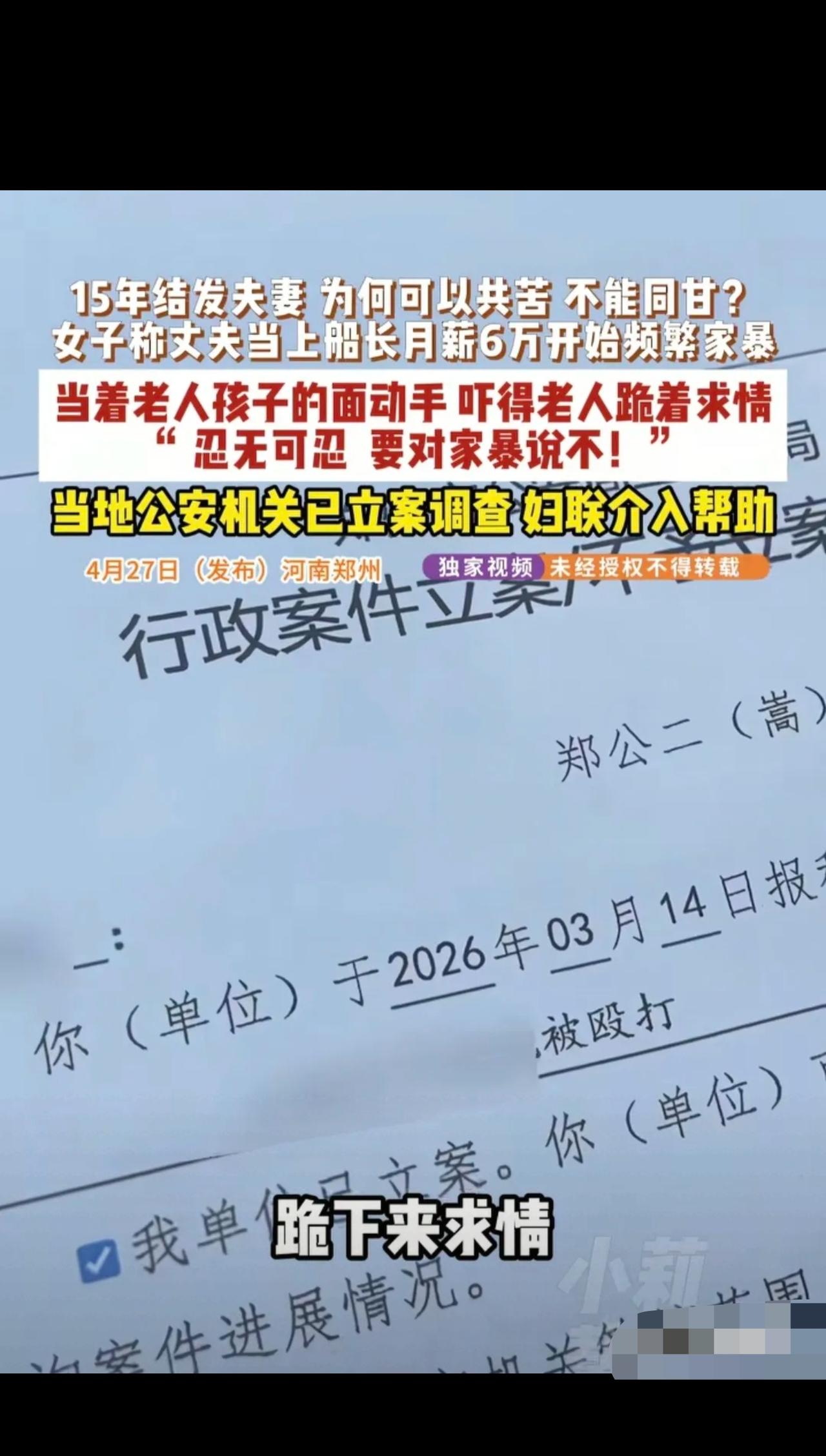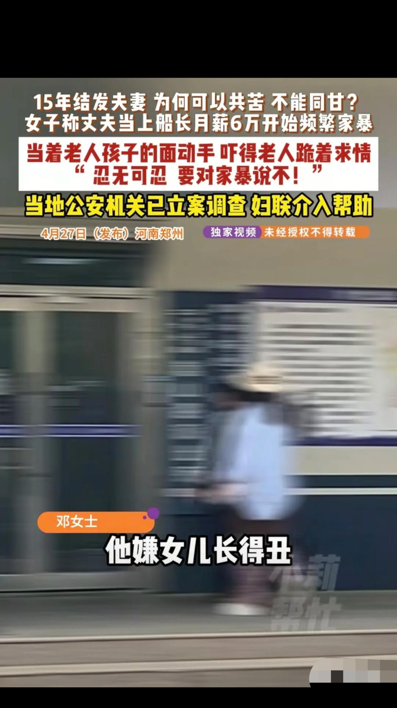 “有钱就变坏!”河南,女子和丈夫结婚15年,生了俩儿子一女,谁料,丈夫当上船长,月薪6万,开始对妻子家暴,辱骂女儿长得丑丢他脸。当岳母面就敢动手,吓得老人下跪求他,他都薅着妻子头发继续动手,之后,还强行带走两个儿子,舍不得给家里花钱,女子忍无可忍了……