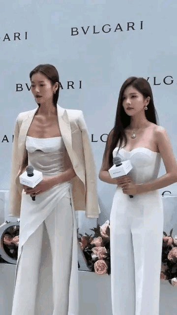 白鹿和刘雯两人一身白色的衣服,都是很洁白无瑕的感觉。一个颜值巅峰,一个气场强大。