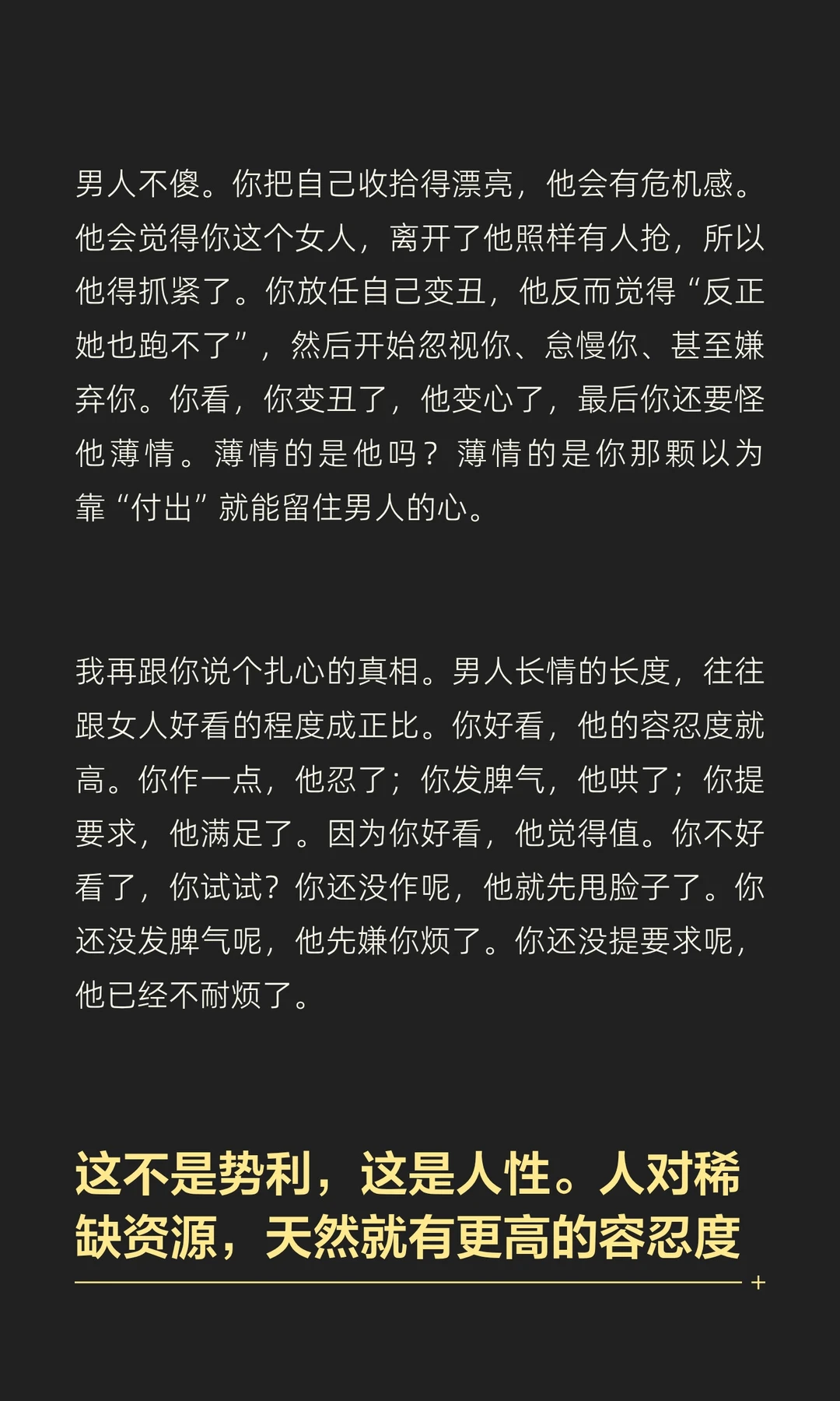 男人长情,大概率是因为女人还貌美