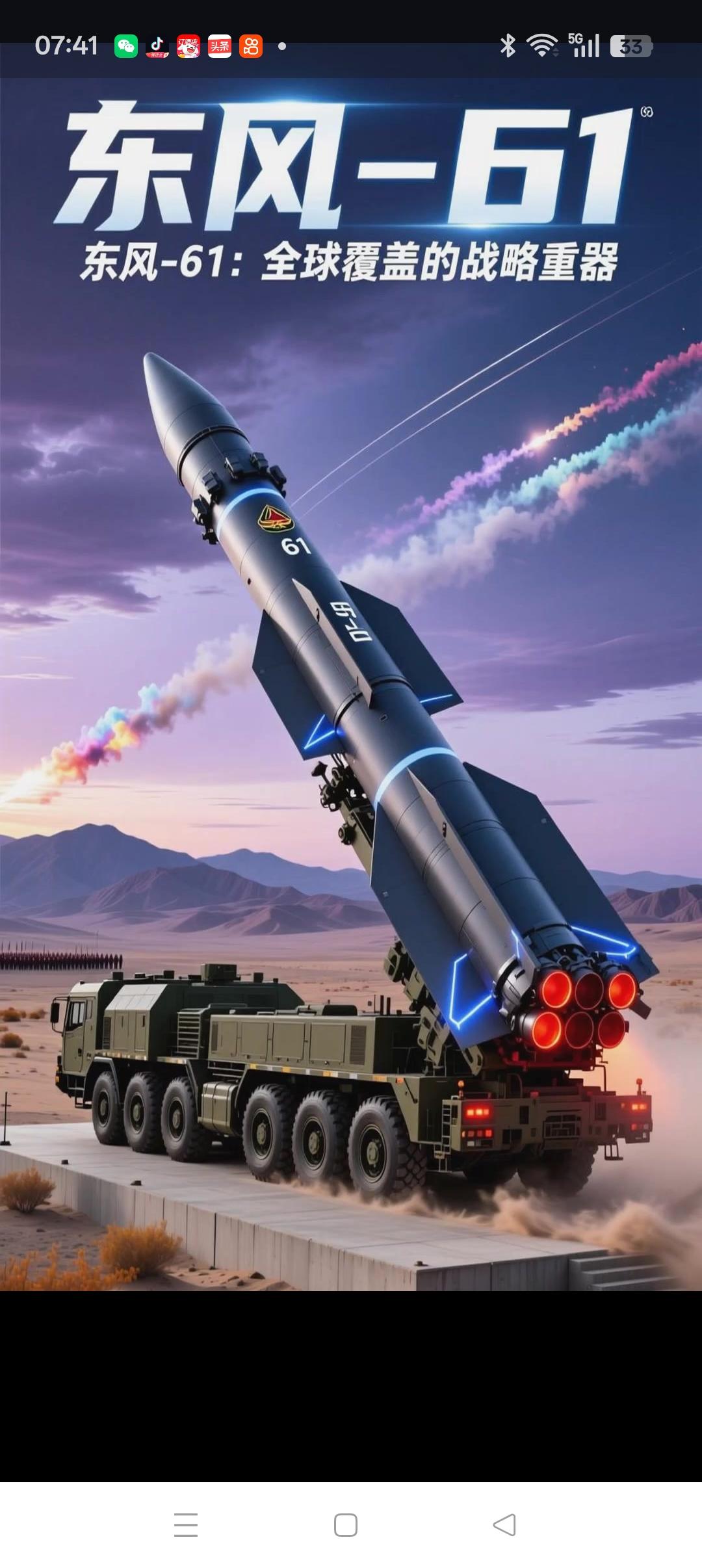 东风 -61 的具体性能指标官方尚未完全解密,但根据多方军事专家分析及公开报道,其主要参数处于全球领先水平: