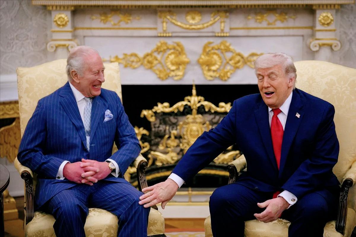 从白宫流出来的照片显示,特朗普总统才不管什么禁忌不禁忌,当他与查尔斯国王促膝谈心时,乐呵呵地拍打着国王的膝盖。而查尔斯国王满面笑容,显然并不在乎。[看]