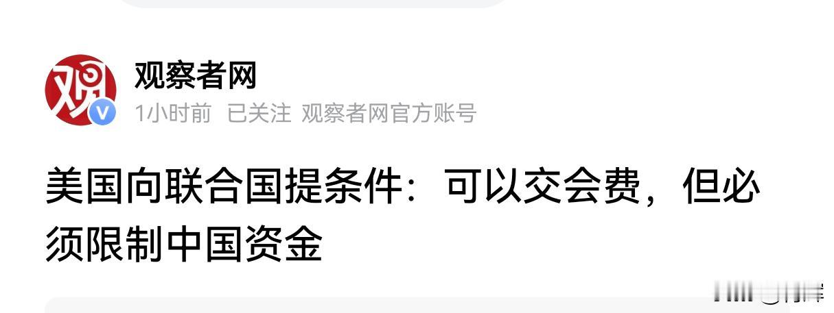 美国向联合国提要求:欠费可以交,但必须要限制中国的掏钱