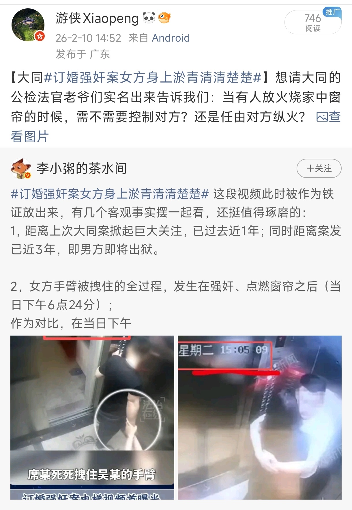 【山西大同订婚强奸案男子婚房被烧窗帘已更换】记得了,有人在你家烧窗帘,不要救火,不要在她/她逃跑时使用强制禁止行为,不然央视会把你控制纵火者逃跑的监控画面移花接木暗示成是事前你强迫的行为。
