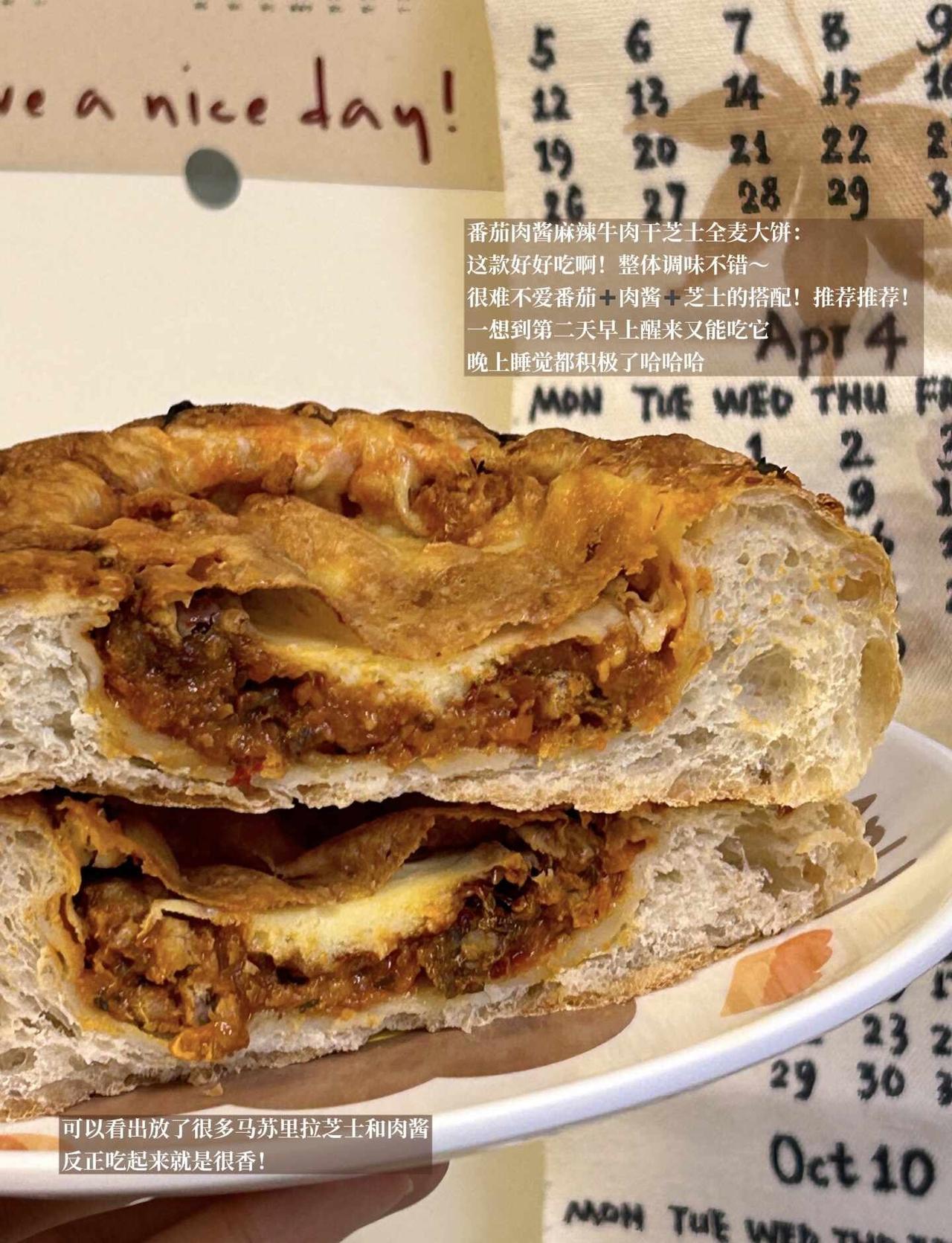 ·番茄肉酱麻辣牛肉干芝士全麦大饼(好好吃[皱眉])