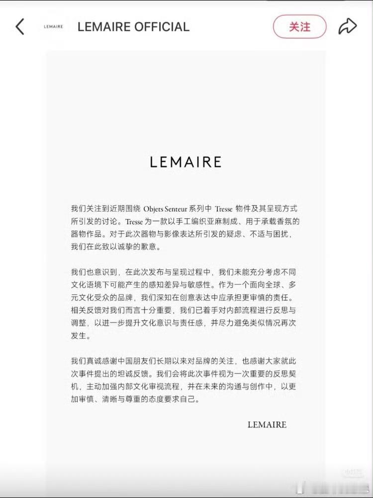 是不是所有的时尚品牌辱华完之后 只是发个声明就无所谓了 是在赌国人没有记忆么时尚品牌lemaire 辫子
