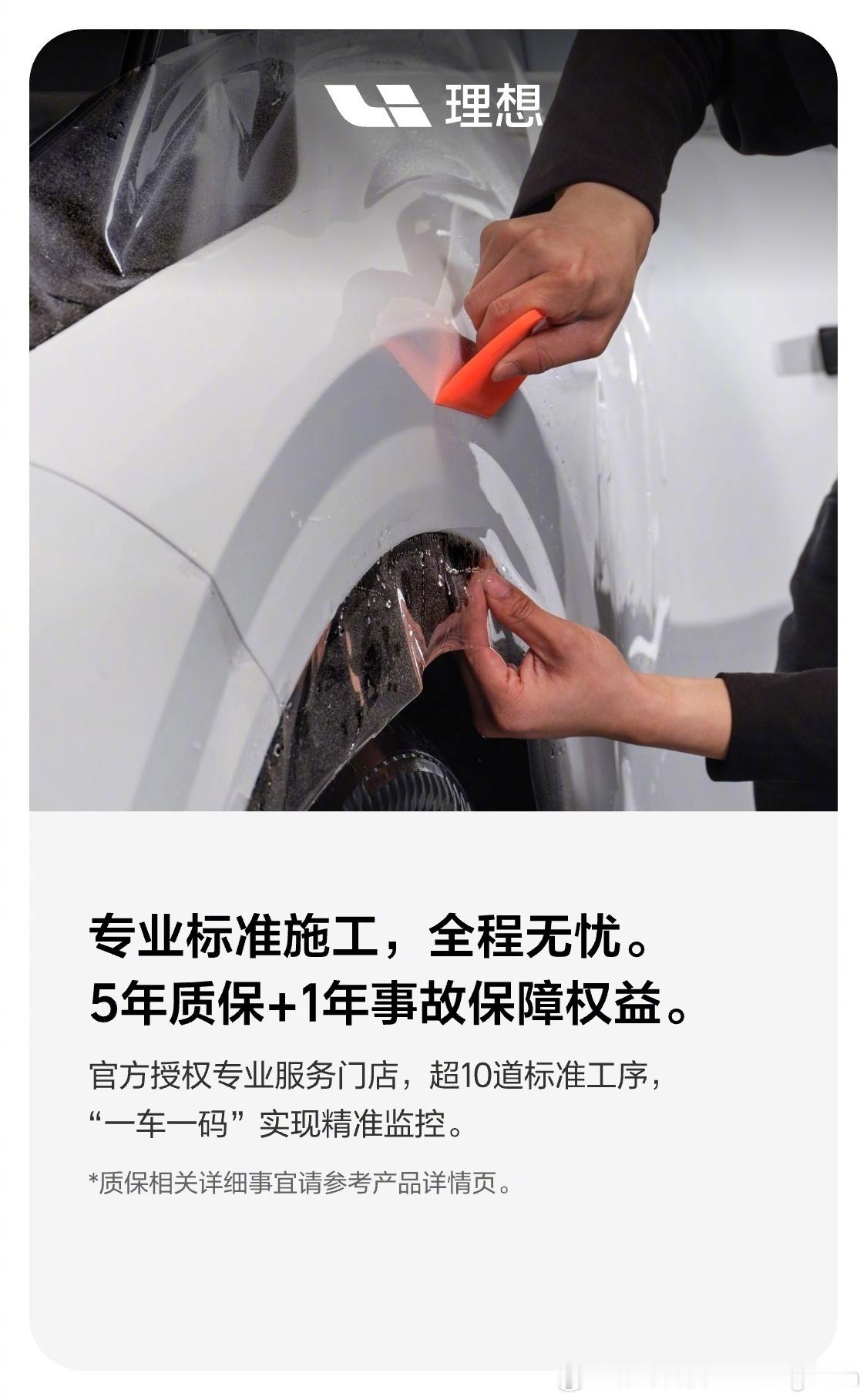 【理想推出隐形车衣 】4月29日消息,理想汽车官方推出定制隐形车衣,优惠价5399元起,适配旗下多款车型,提供5年质保外加1年事故保障。该车衣采用高品质TPU原料与定制胶水,工艺成熟,撕除不留残胶、不伤原厂车漆。