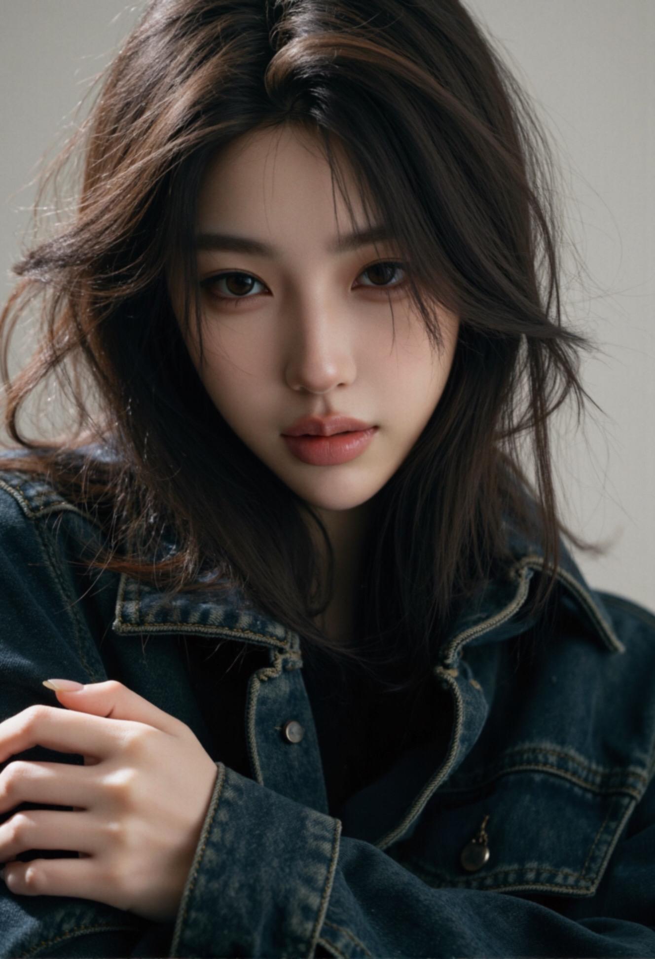 牛仔外套搭配绝美妆容 清冷气质 情绪头像写真