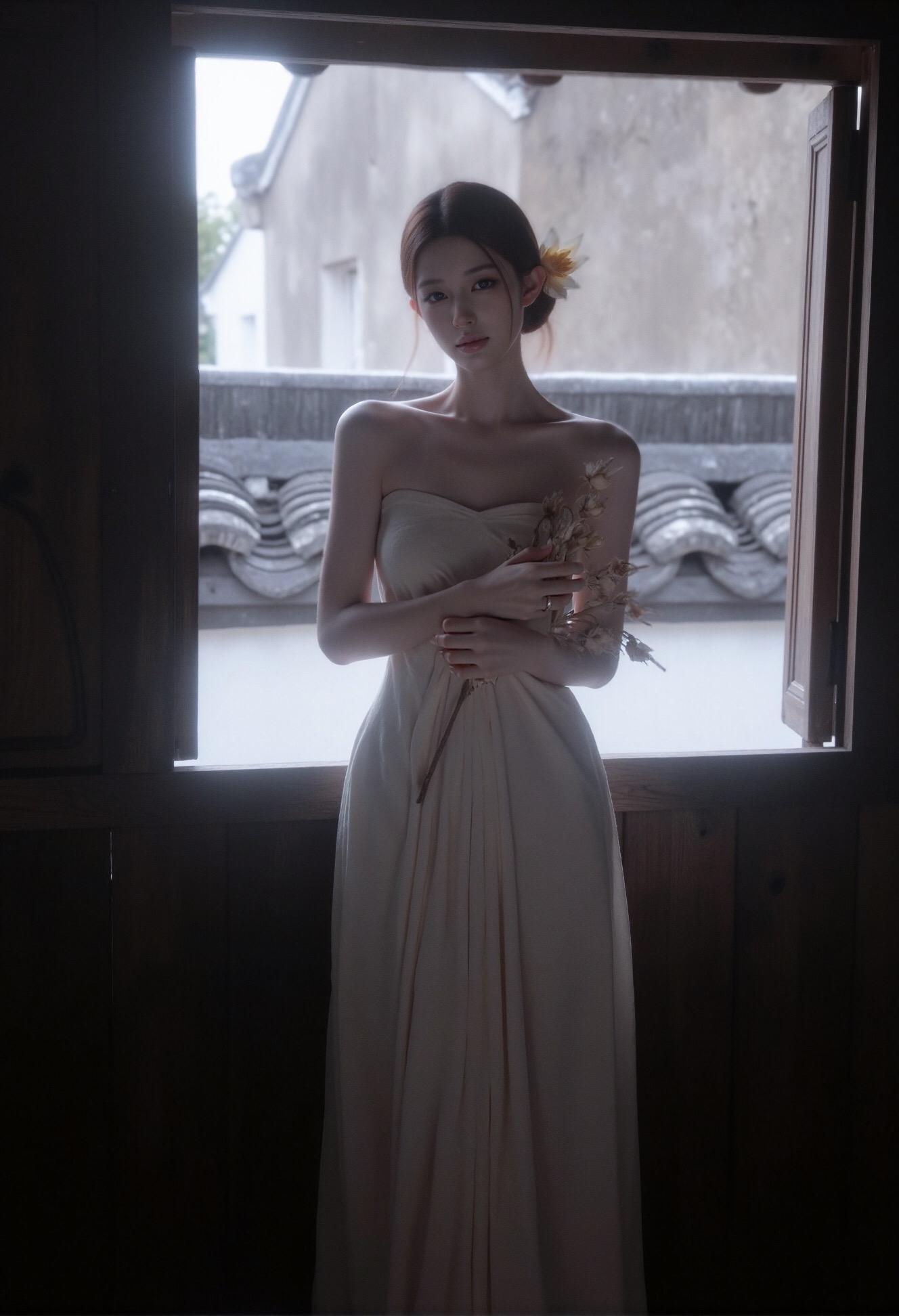 温柔风 禅意白裙 清冷气质礼服 AI