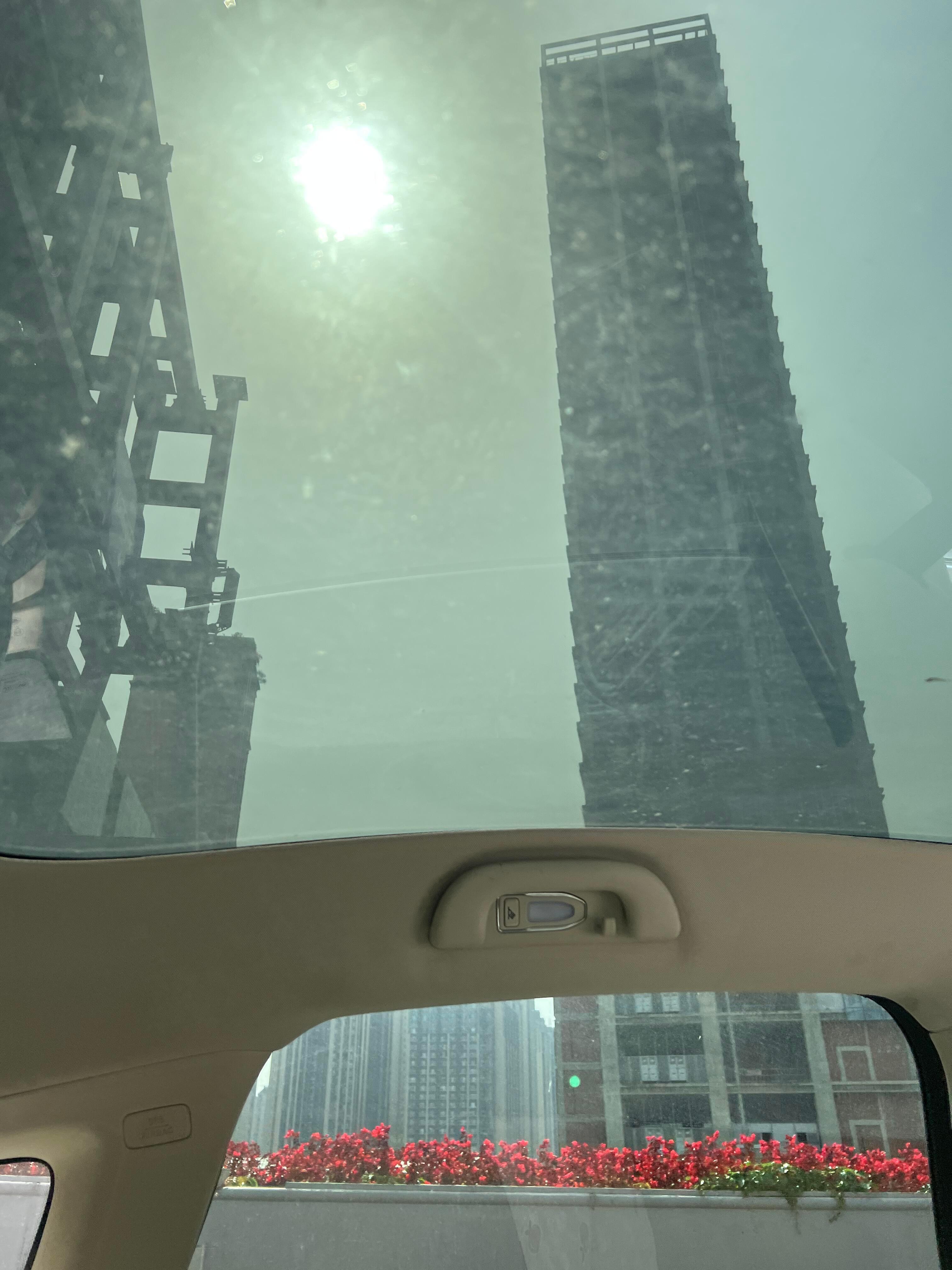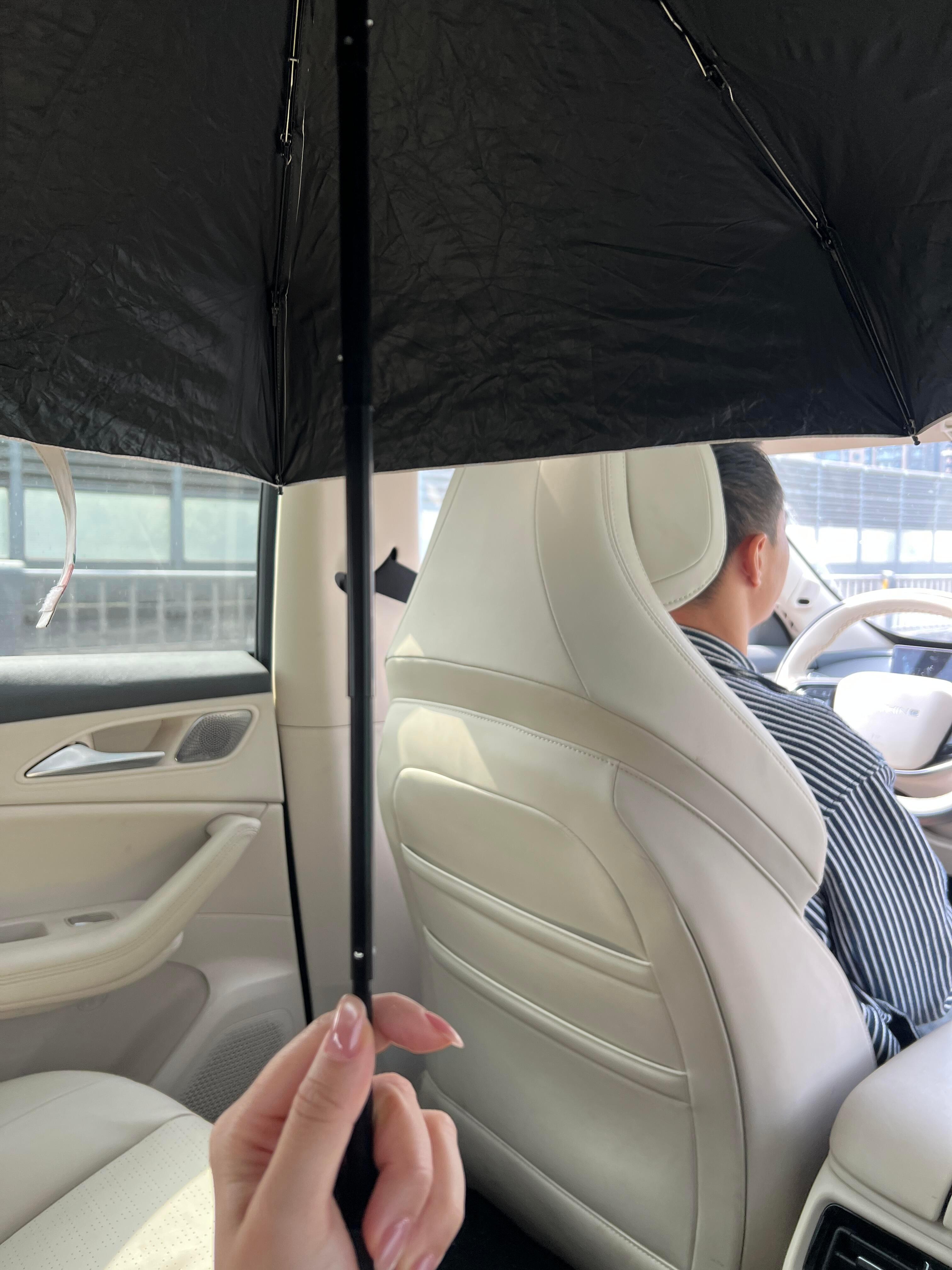 谁懂坐个车 还必须打太阳伞