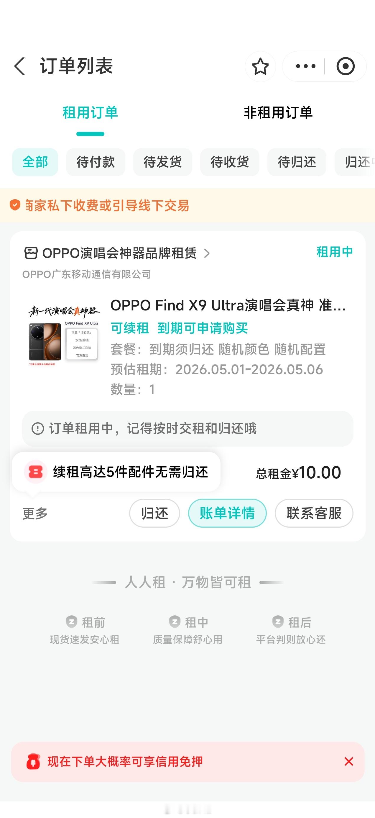 我去,11ghz 租的 FindX9U 居然是全新的,租 6 天才 9.9