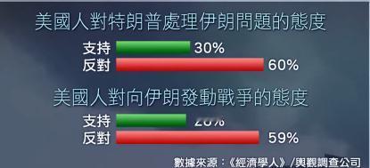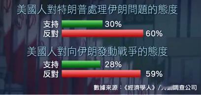 对他政策不满:仅34% 的受访者支持美国对伊朗的军事行动,且72%的受访者认为美国正走在错误的方向上。