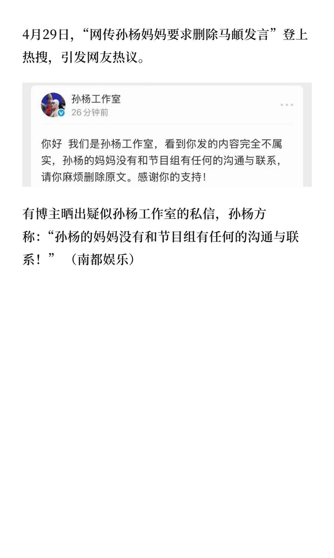 网传孙杨妈妈要求删除马頔发言这要是真的,真挺玩不起的都参加综艺了还在乎这吗?