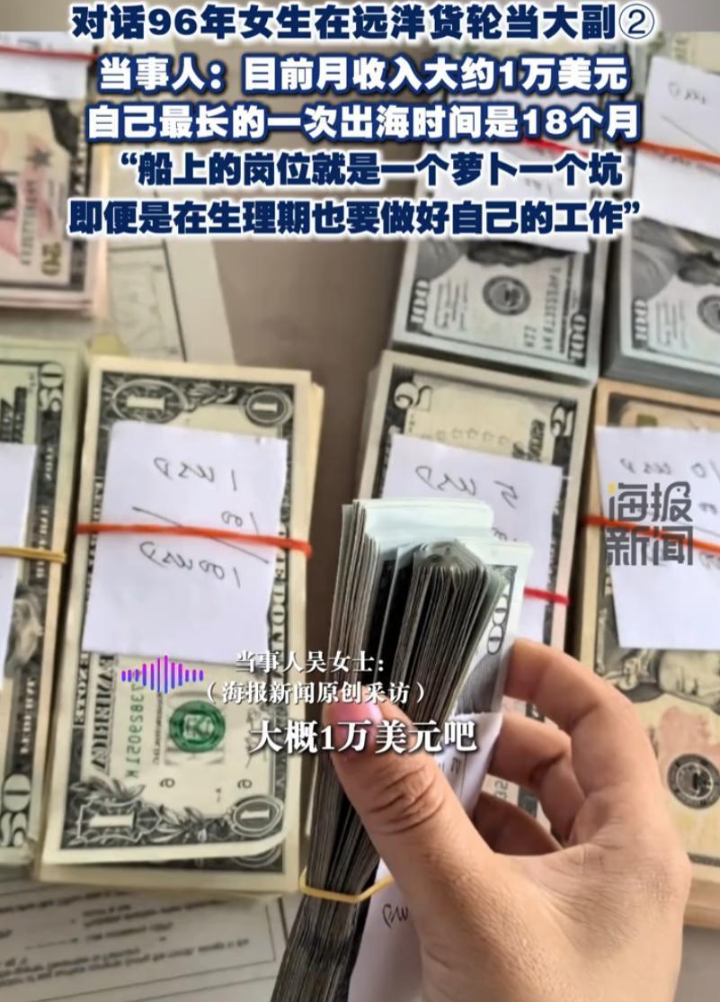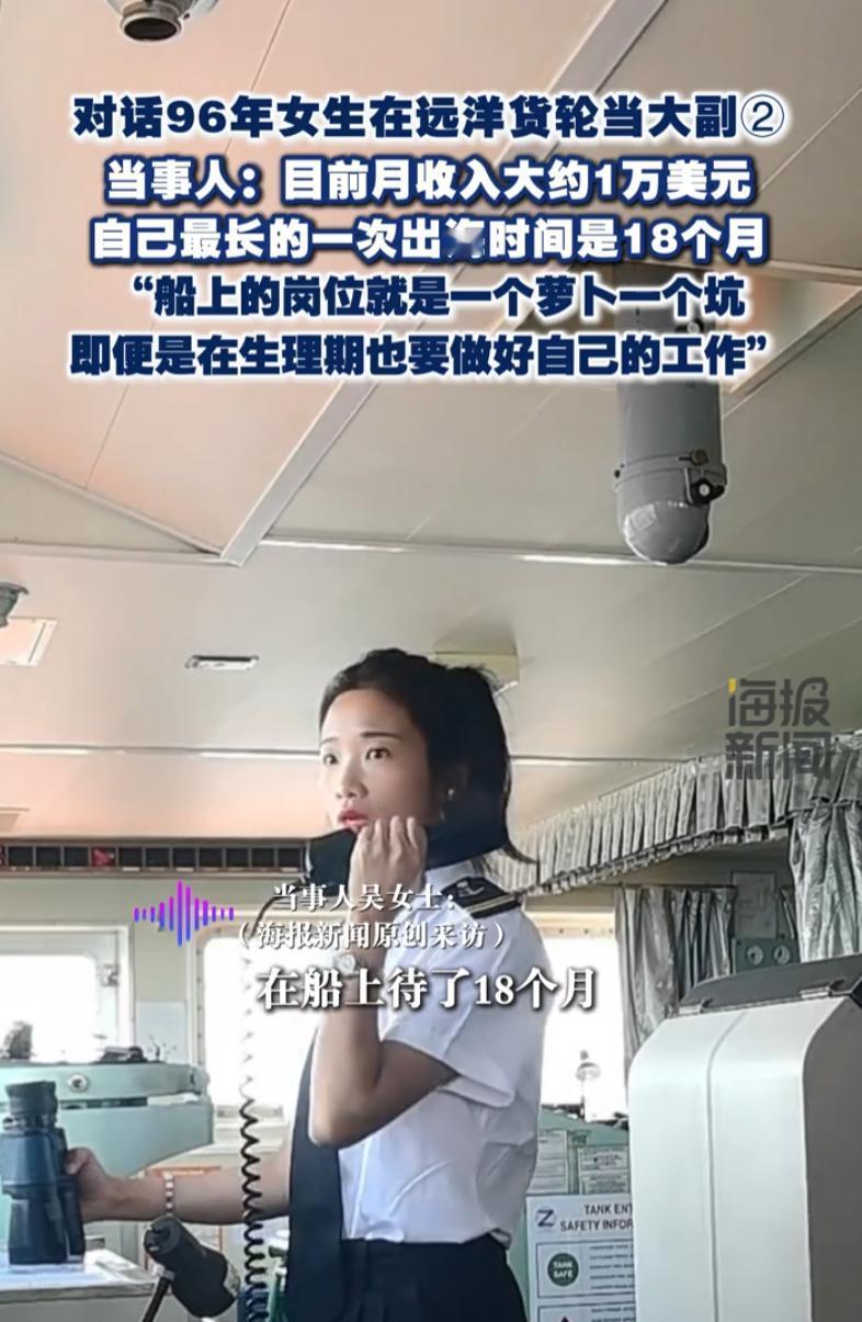一名30岁的女生火了!在远洋货轮上干到了大副。一个月收入1万美金,折合人民币将近