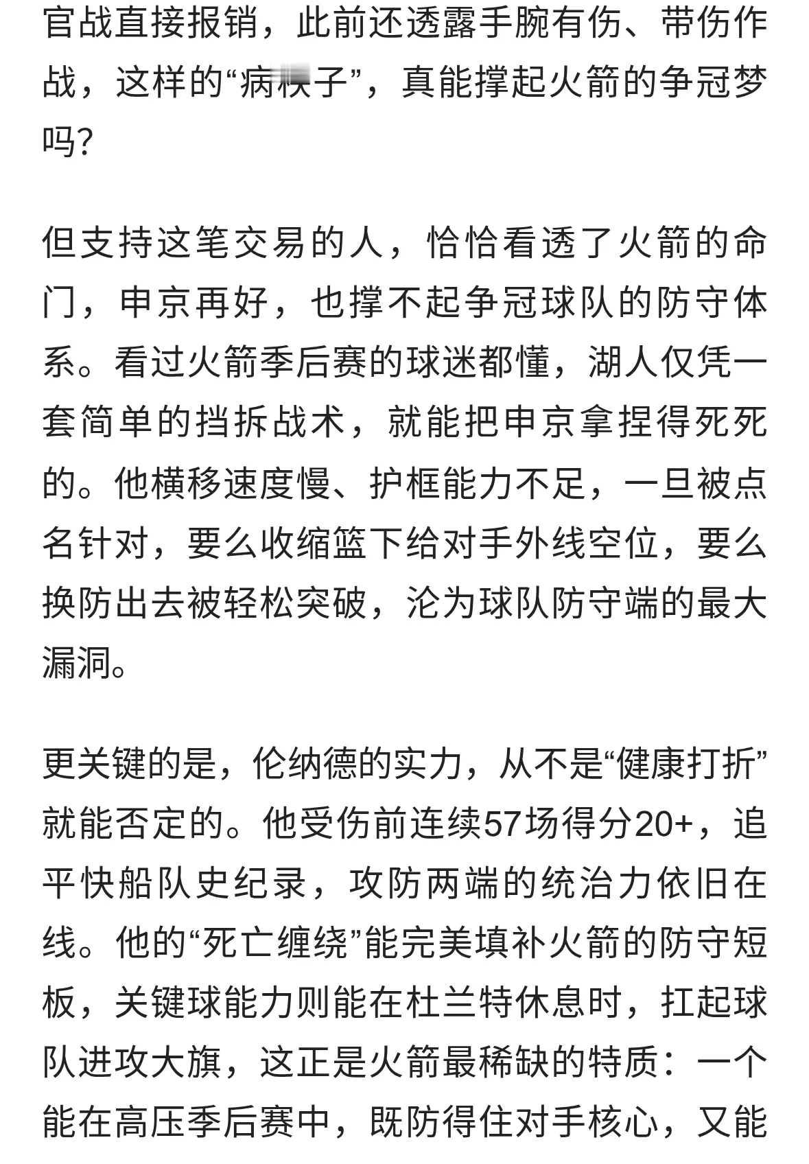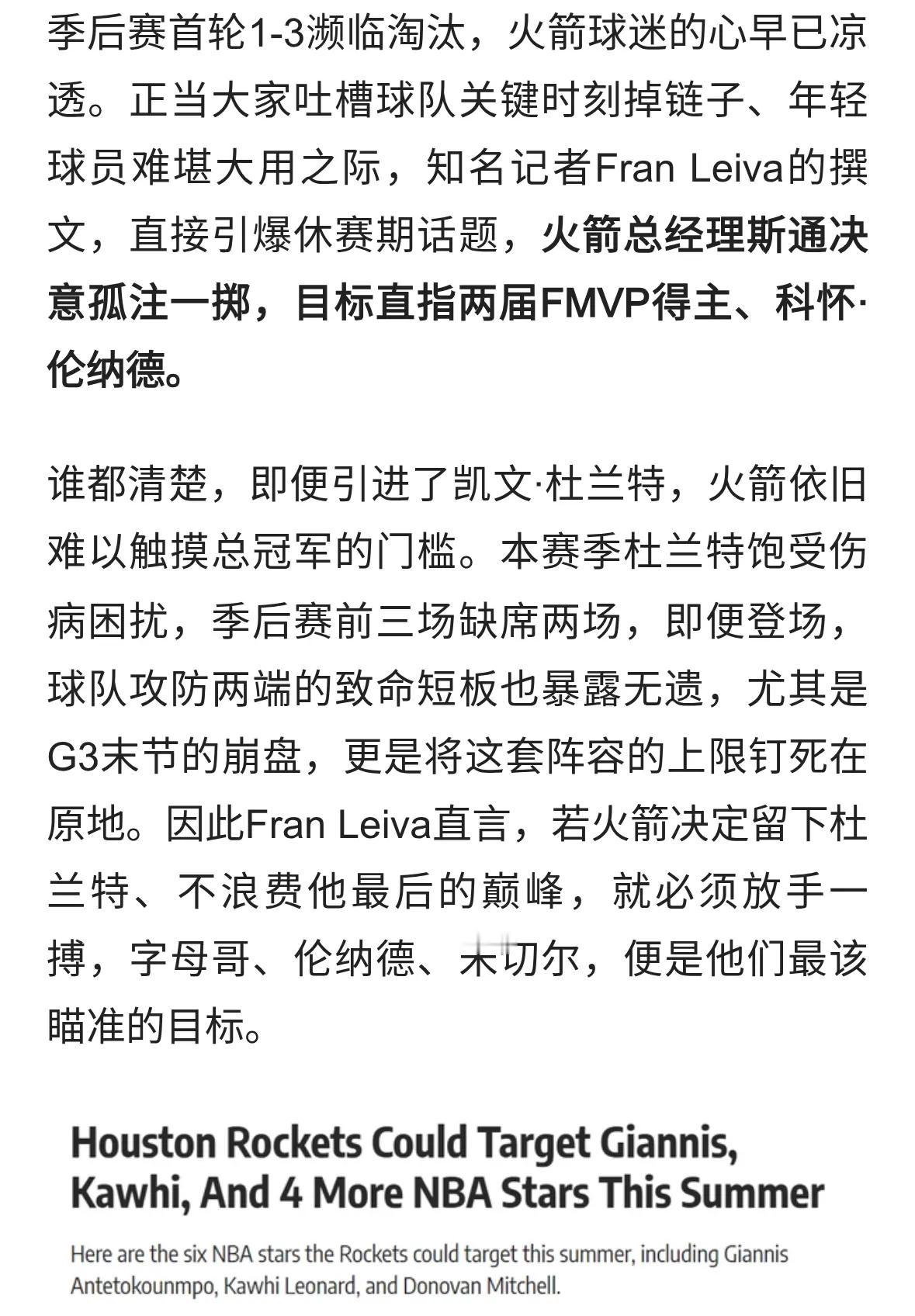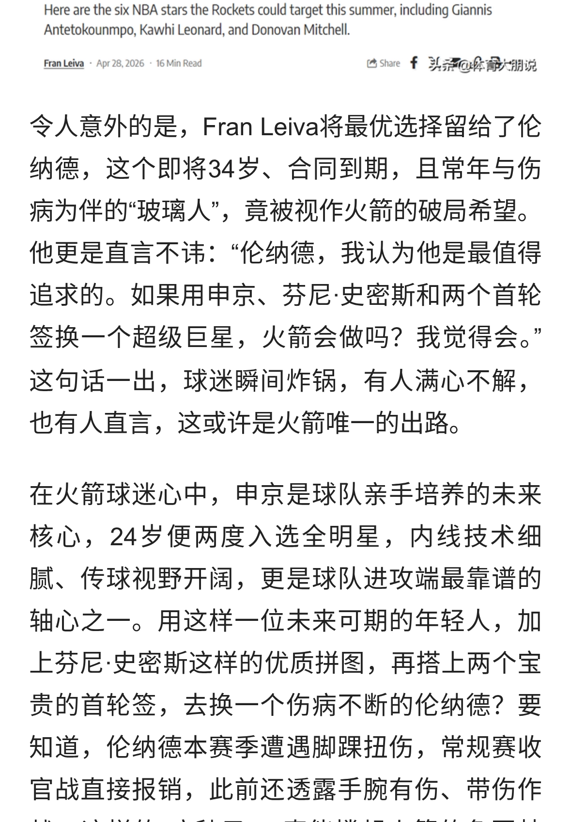 斯通终于坐不住了!火箭追求伦纳德,申京沦为筹码,总冠军稳了?