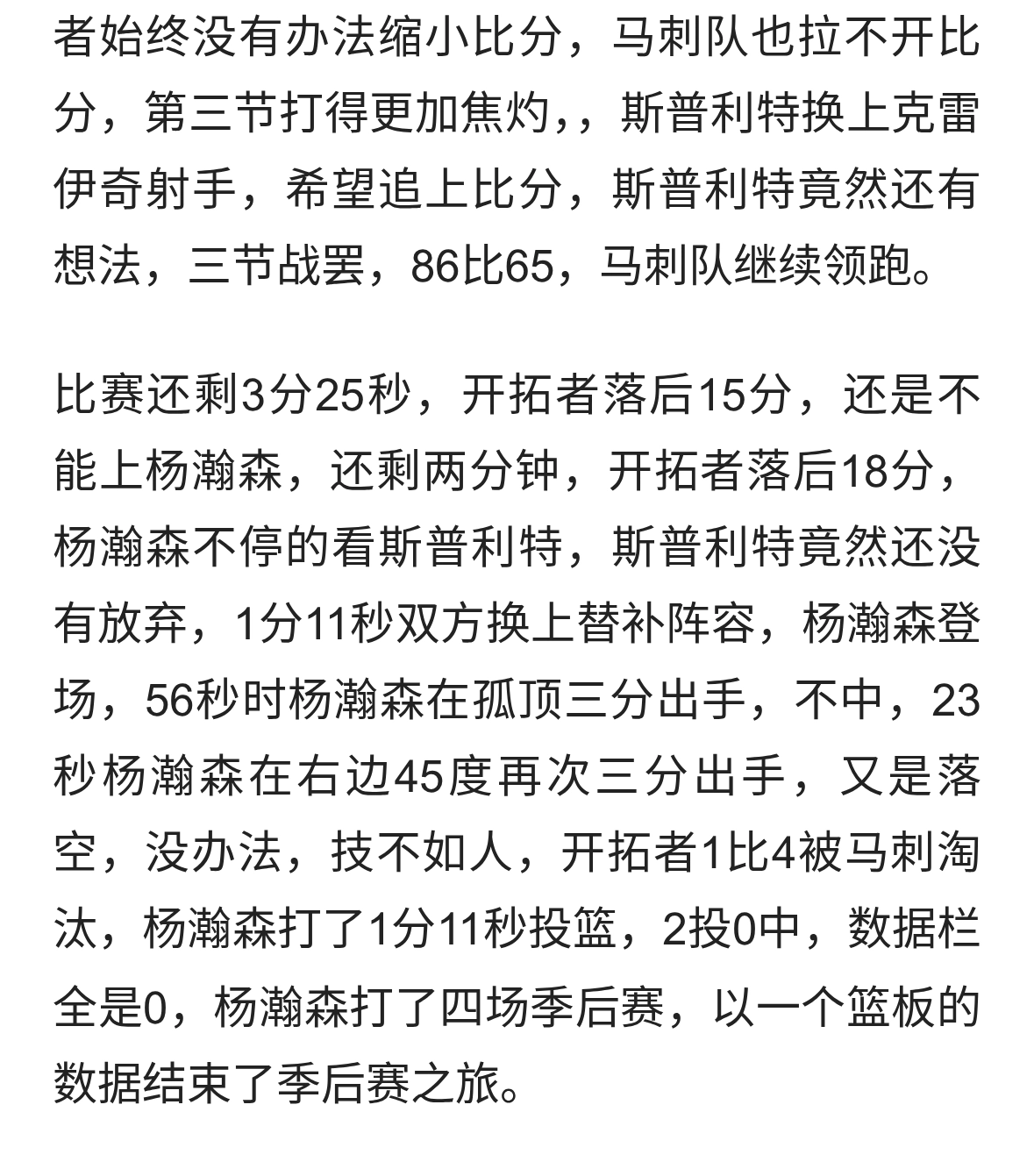 2投0中,杨瀚森打了四场季后赛,以一个篮板的数据结束季后赛之旅